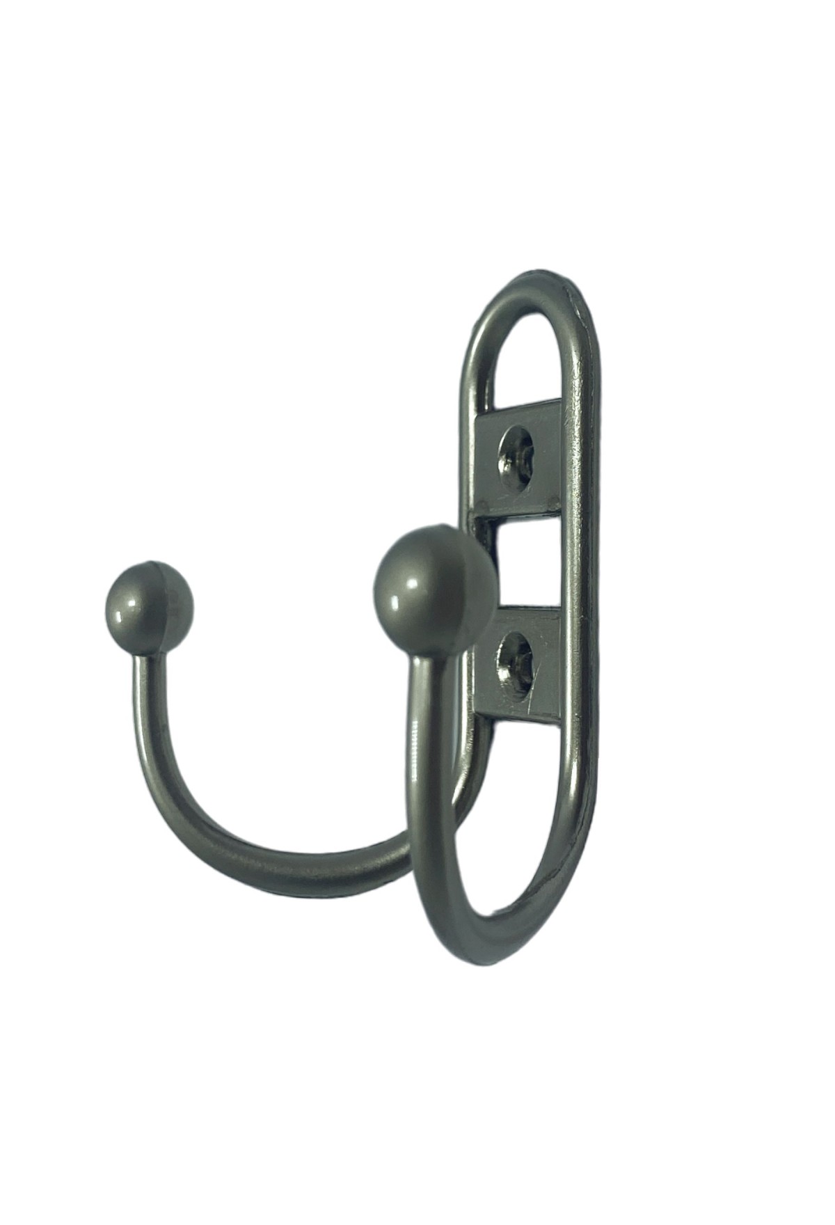 ХБ Крючок для одежды настенный двухрожковый прутковый Матовый никель 1шт