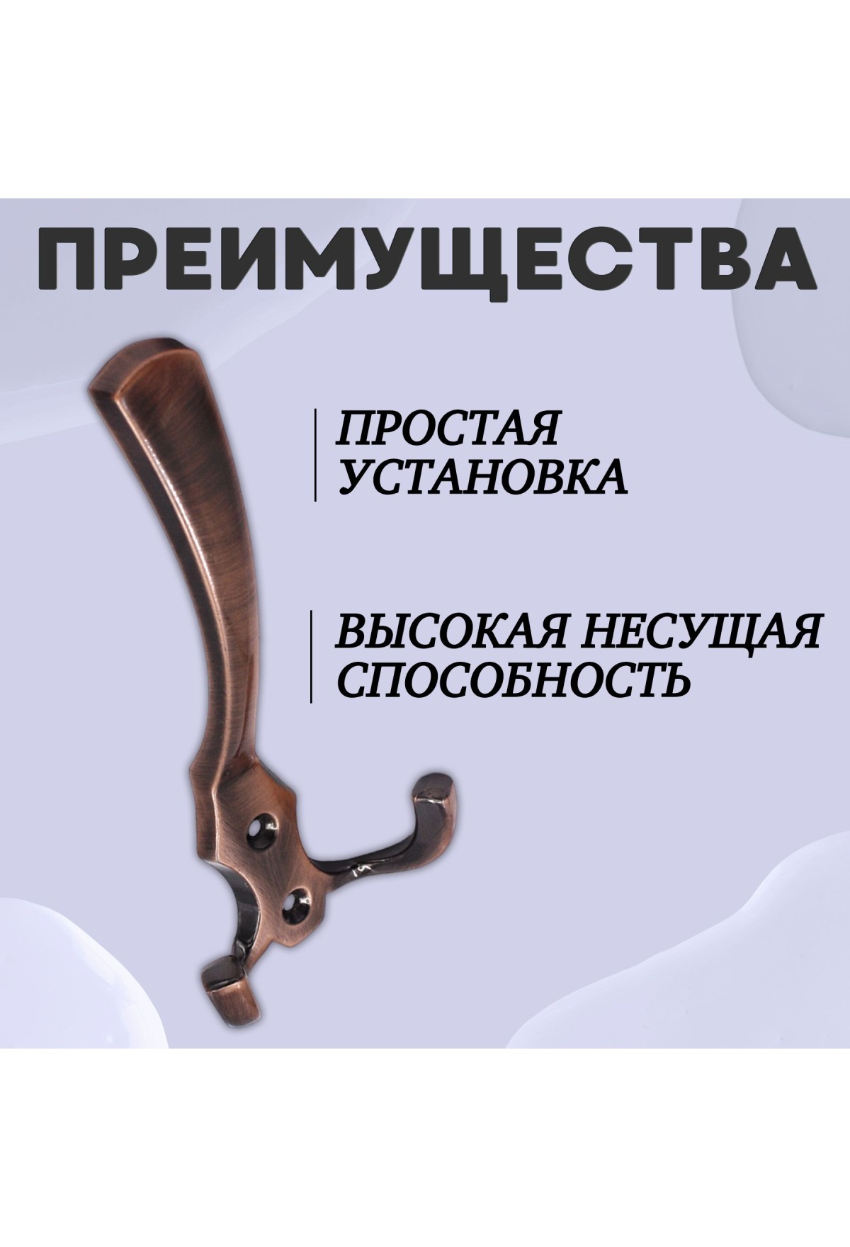 Разнообразие возможностей, которое предлагает трёхрожковый крючок, просто поразит тебя. Теперь у тебя есть возможность удобно хранить не только одежду, но и аксессуары, сумки или даже ключи - все, что тебе дорого и важно.