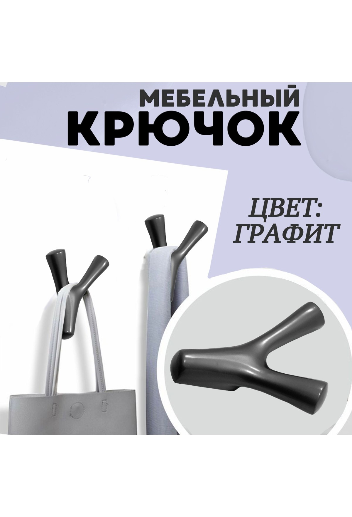 ХБ Крючок двухрожковый UNO Графит 3шт