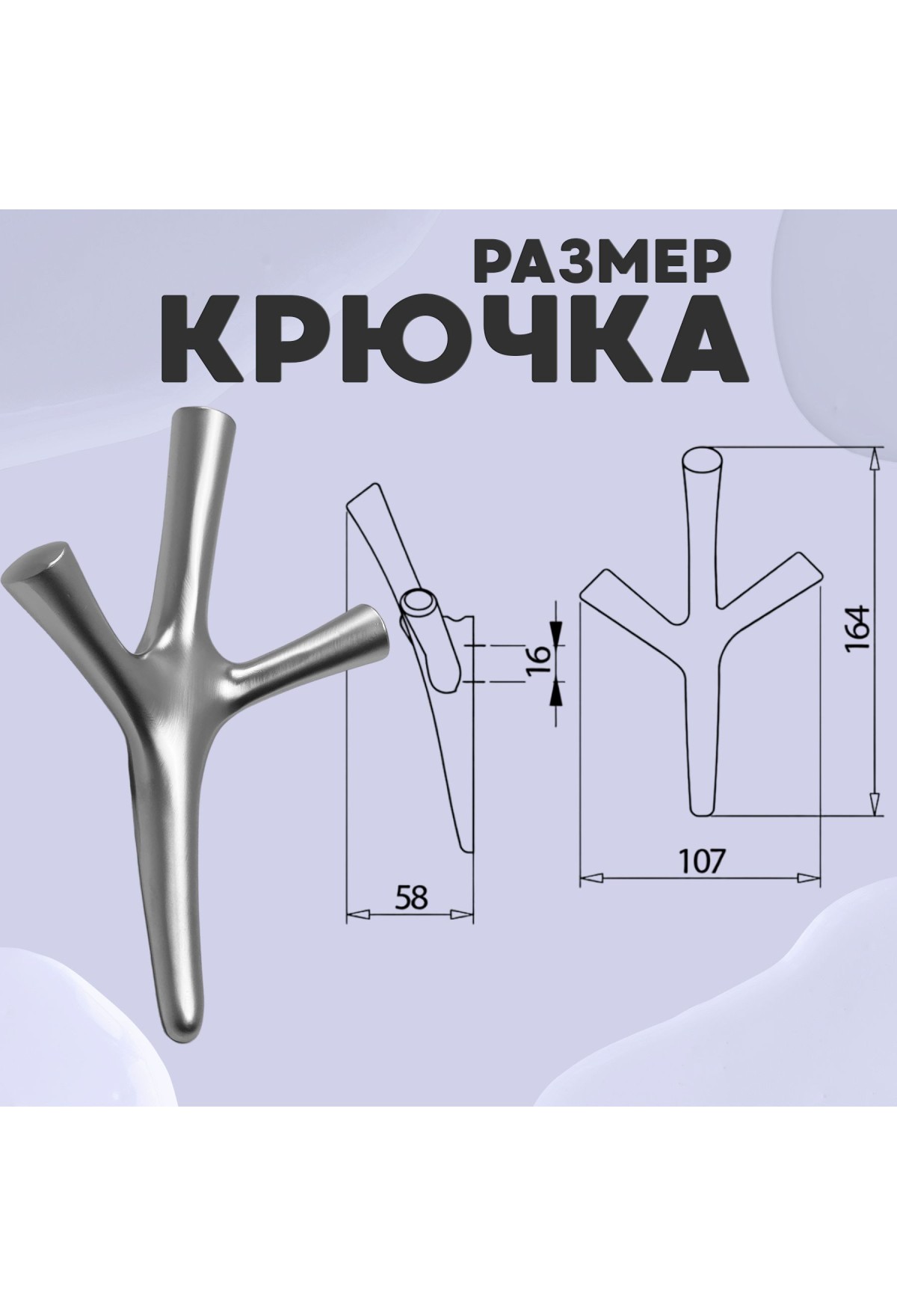 Разнообразие возможностей, которое предлагает трёхрожковый крючок, просто поразит тебя. Теперь у тебя есть возможность удобно хранить не только одежду, но и аксессуары, сумки или даже ключи - все, что тебе дорого и важно.