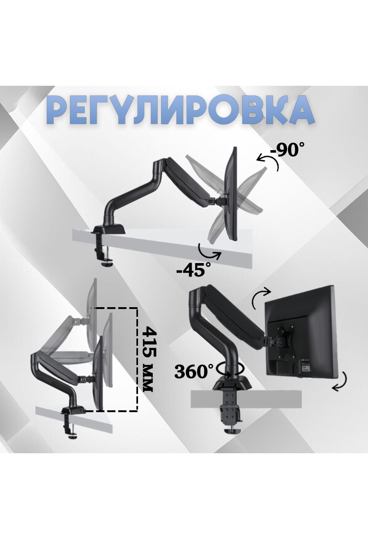 Вращение экрана: С возможностью вращения экрана на 360 градусов, этот кронштейн позволяет легко переключаться между портретной и альбомной ориентацией монитора.