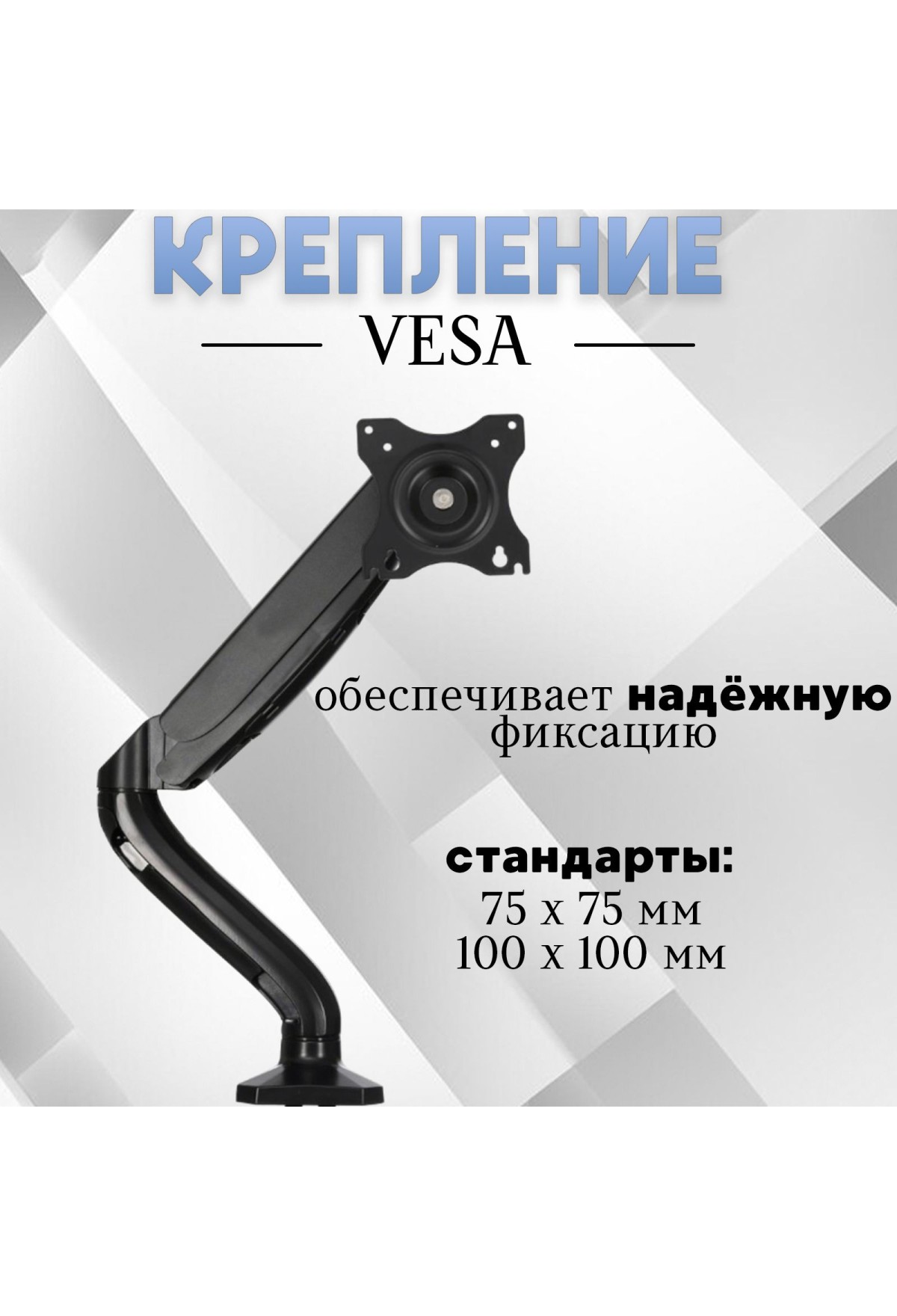 Кронштейн для монитора на стол от 17" до 32" с максимальной нагрузкой до 10 кг и стандартным VESA креплением 75x75 мм и 100x100 мм представляет собой инновационное и удобное решение для организации вашего рабочего пространства. Это крепление для монитора обеспечивает надежную поддержку монитора, позволяет легко регулировать положение экрана для оптимальной эргономики и обеспечивает повышенный комфорт при работе или развлечениях за компьютером. Широкий диапазон совместимых размеров: Держатель для монитора идеально подходит для мониторов с диагональю от 17" до 32". Благодаря этому широкому диапазону, вы можете быть уверены, что ваш монитор подойдет для установки на этот кронштейн для монитора на стол, будь то стандартный 24-дюймовый монитор или крупный 32-дюймовый монстр с высоким разрешением.