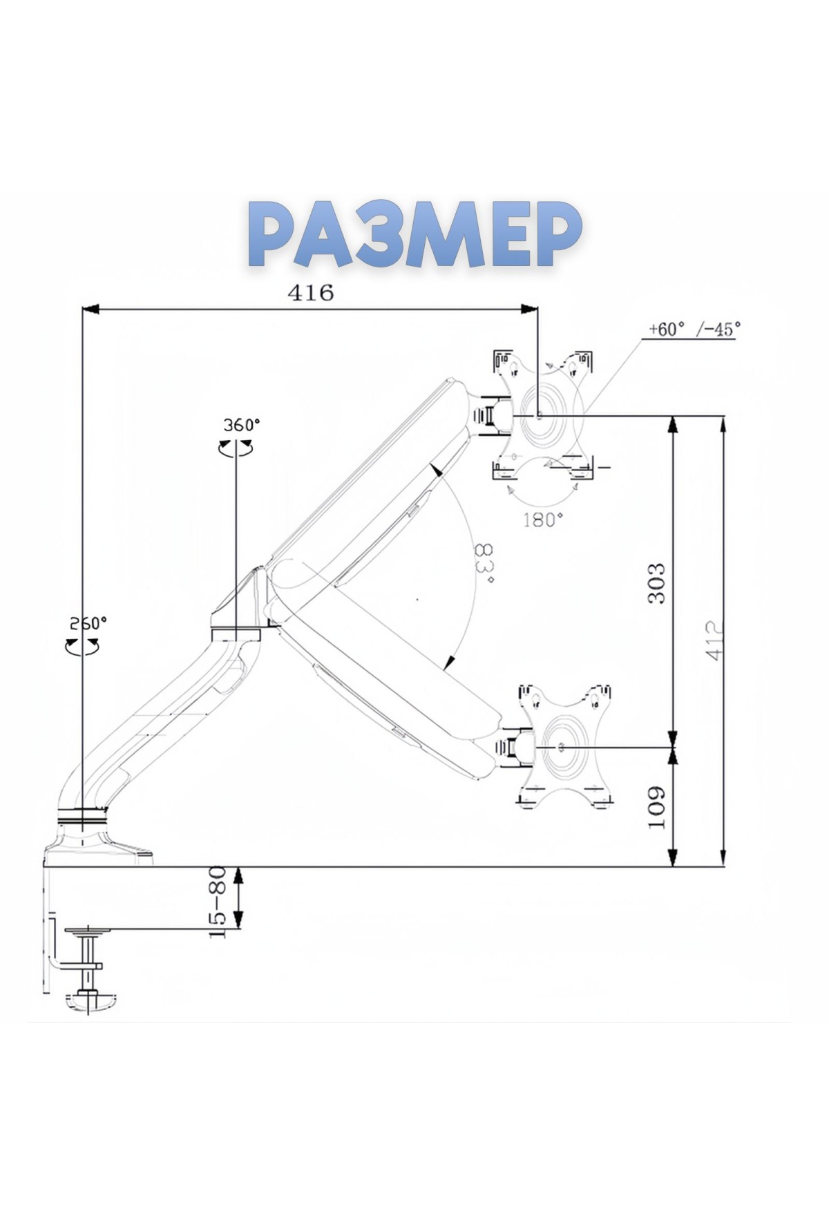 Наклон: Кронштейн обеспечивает регулировку наклона монитора от +85 градусов до -30 градусов. Это позволяет легко настроить угол просмотра для оптимального комфорта и уменьшения нагрузки на глаза и шею.
