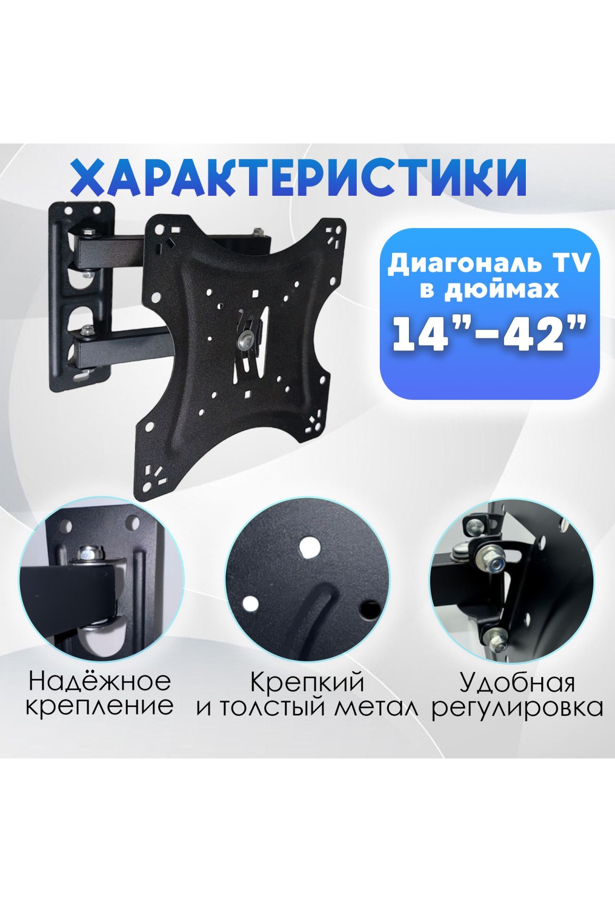 Хотите превратить свой дом в настоящий кинотеатр? Тогда вам точно понадобится кронштейн для LCD и LED-телевизоров с диагональю от 14" до 42" дюймов! Этот универсальный кронштейн позволит установить ваш телевизор на стену таким образом, чтобы вы могли наслаждаться просмотром фильмов, сериалов и музыкальных клипов в любой комнате. Наклонно-поворотный механизм позволит вам легко регулировать угол обзора, чтобы получить наилучший вид из любой точки комнаты. Благодаря этому кронштейну вы сможете создать идеальный образ для вашего домашнего кинотеатра, а также сделать презентацию в офисе или украсить гостиную. Этот кронштейн подходит для большинства моделей телевизоров, включая Xiaomi, LG, Samsung и другие популярные бренды. Он прост в установке и обладает надежным креплением, что гарантирует безопасность вашего телевизора. Не упустите возможность приобрести кронштейн для телевизора по выгодной цене во время нашей распродажи! Этот товар отличается стильным дизайном, функциональностью и надежностью. Купите кронштейн для LCD и LED-телевизоров с диагональю от 14" до 42" дюймов прямо сейчас и превратите свой дом в уютный кинотеатр!