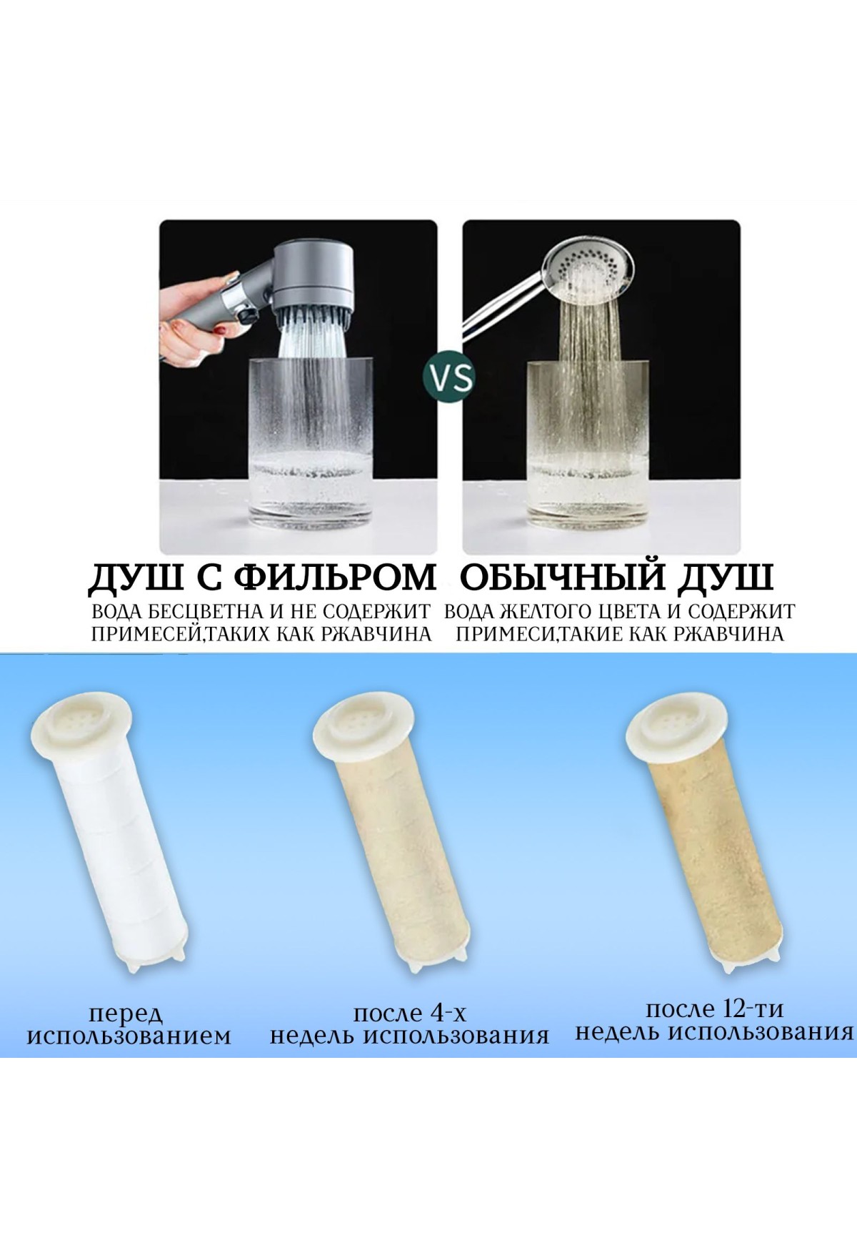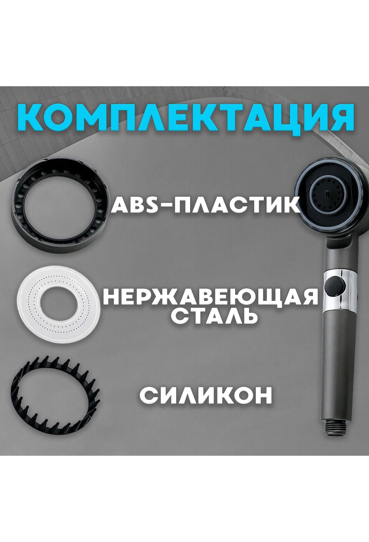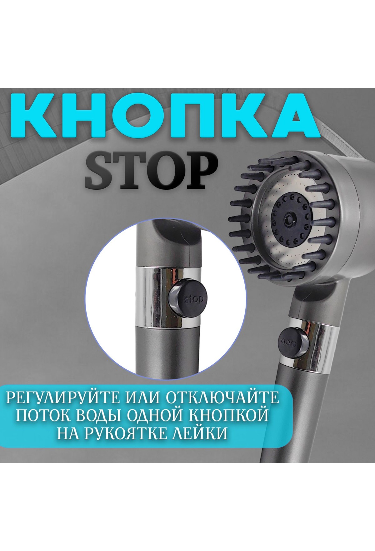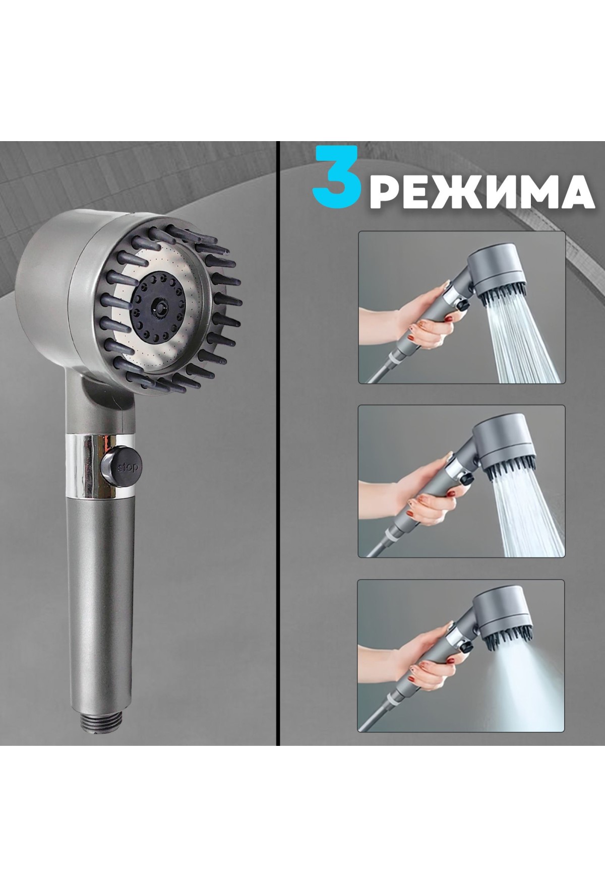 ХБ Лейка для душа массажная с фильтром , 3 режима водосберегающая MASAGE Grey