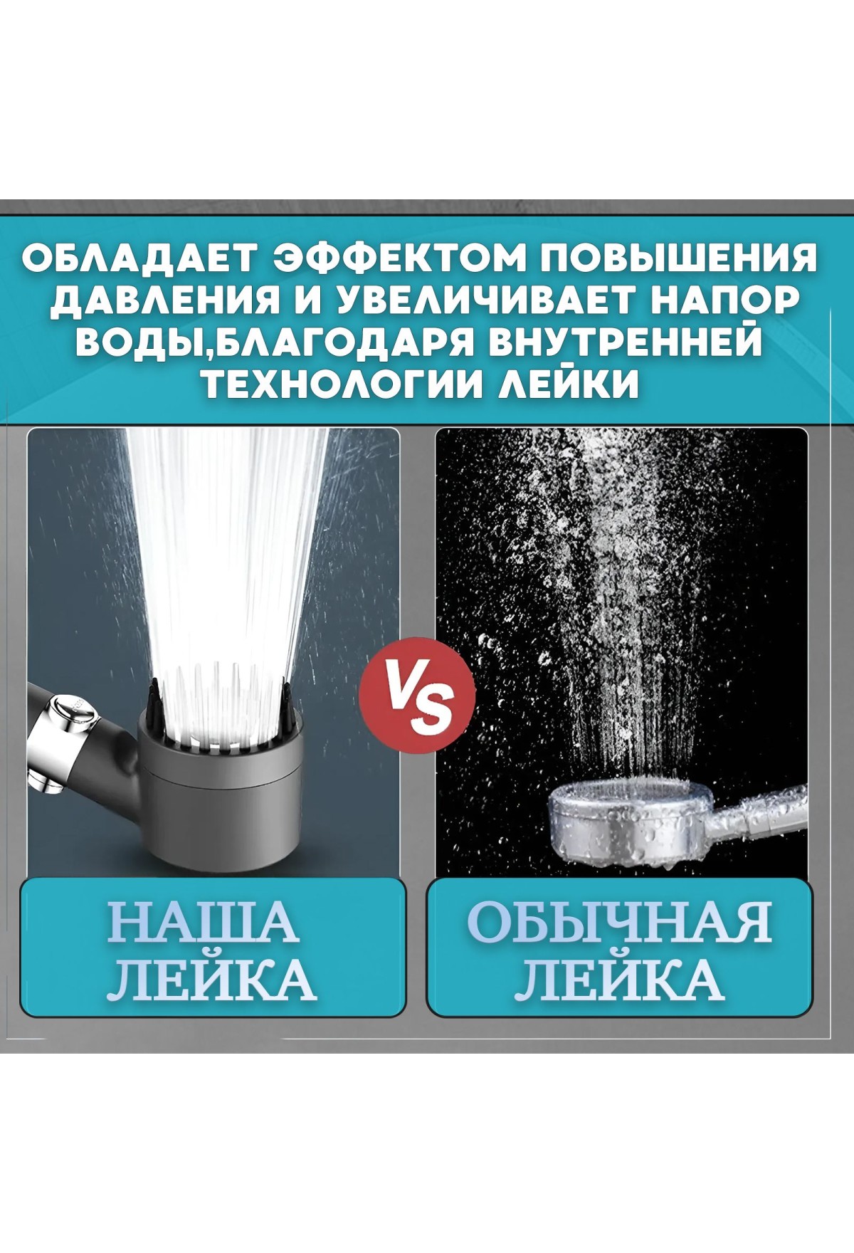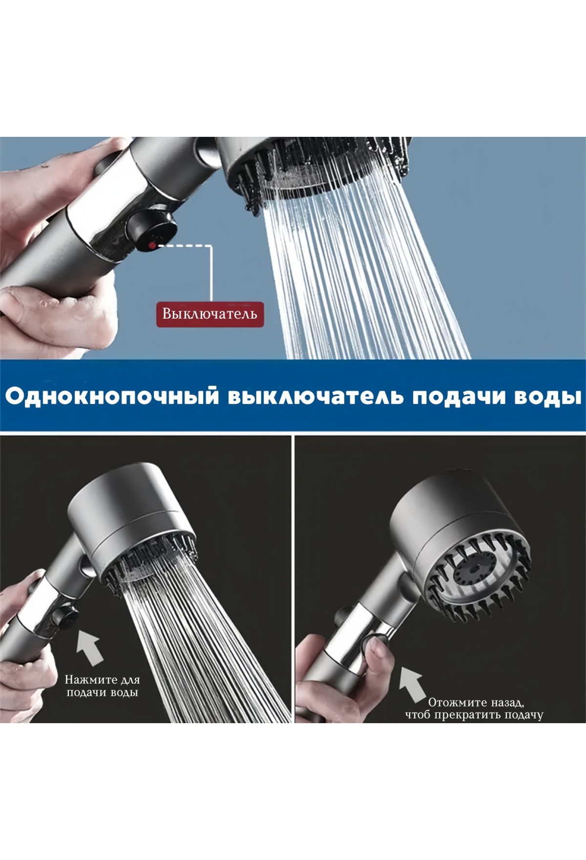 Благодаря этой лейке для душа, водные процедуры будут гораздо приятней. Лейка содержит 3 режима потока воды: комбинированный напор, массажный режим или режим распыления, тропический душ. Режимы переключаются поворотом клавиши. Душевая лейка существенно экономит воду, что позволит снизить ваши затраты. Она выдаёт узконаправленный напор, благодаря чему не происходит излишнего разбрызгивания. Кнопка старт стоп выключит воду одним нажатием. Крепление универсальное, поэтому набор подойдет для любого смесителя. Лейка сделана из ABS пластика, а внутри ручки есть сменный фильтр для воды. Благодаря мелким отверстиям поток воды на столько мягкий, что водные процедуры для вас будут очень приятные. А благодаря резиновым щетинкам можно сделать расслабляющий массаж для тела и головы, разогнать кровь после тяжелого дня и поправить проблемные зоны. Стильный дизайн подойдет как мужчинам, так и женщинам, отлично впишется в любую ванную комнату.