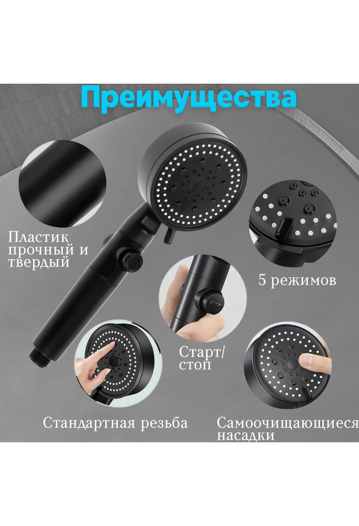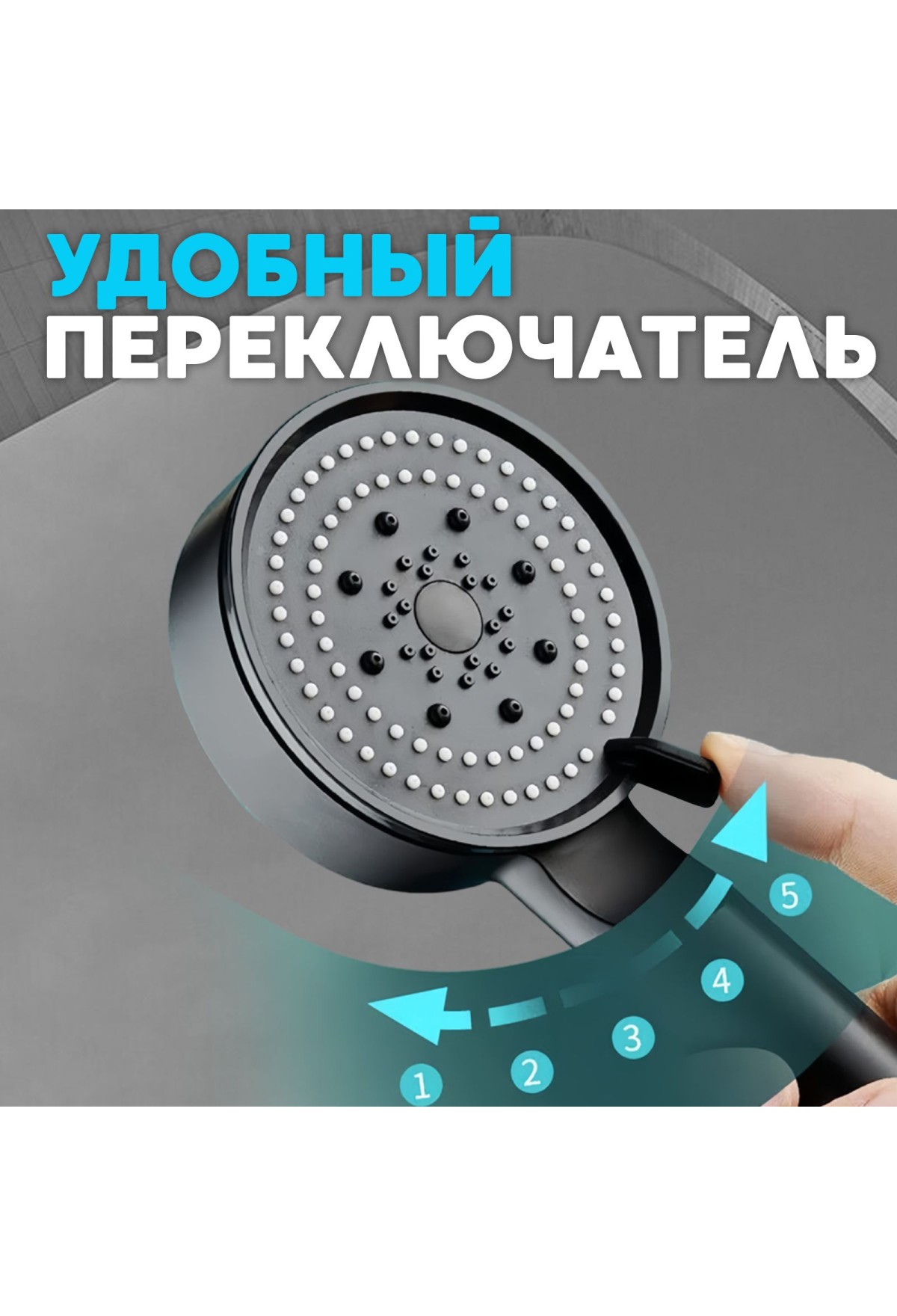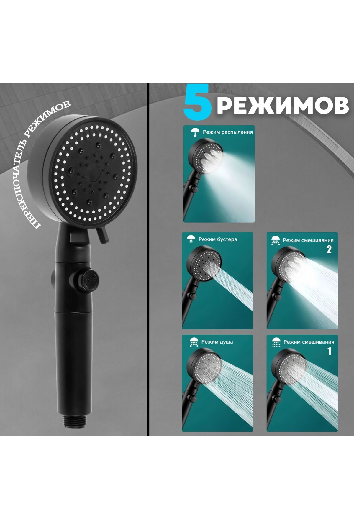 ХБ Лейка для душа со шлангом 1,5м и держателем, водосберегающая, 5 режимов, держатель для лейки, душевой комплект черный