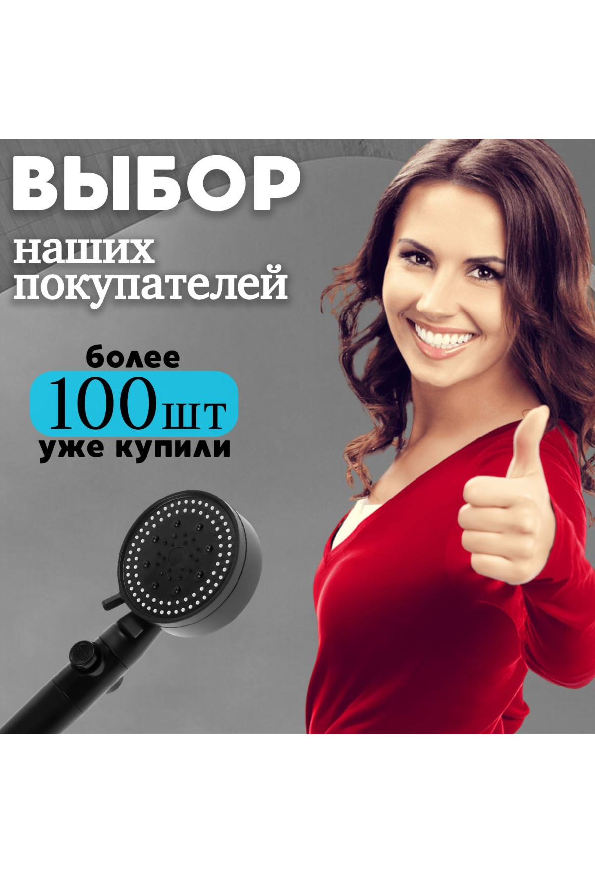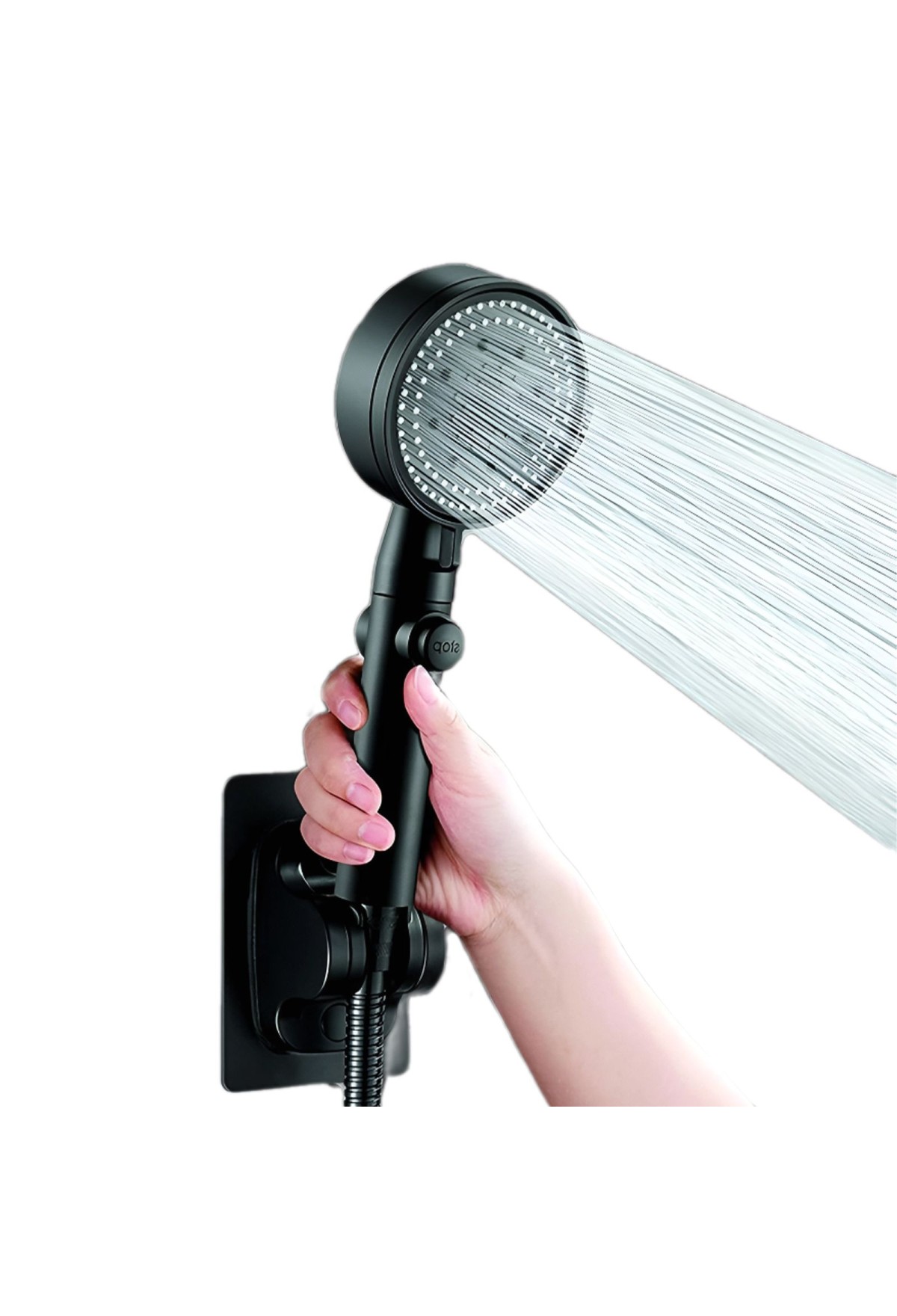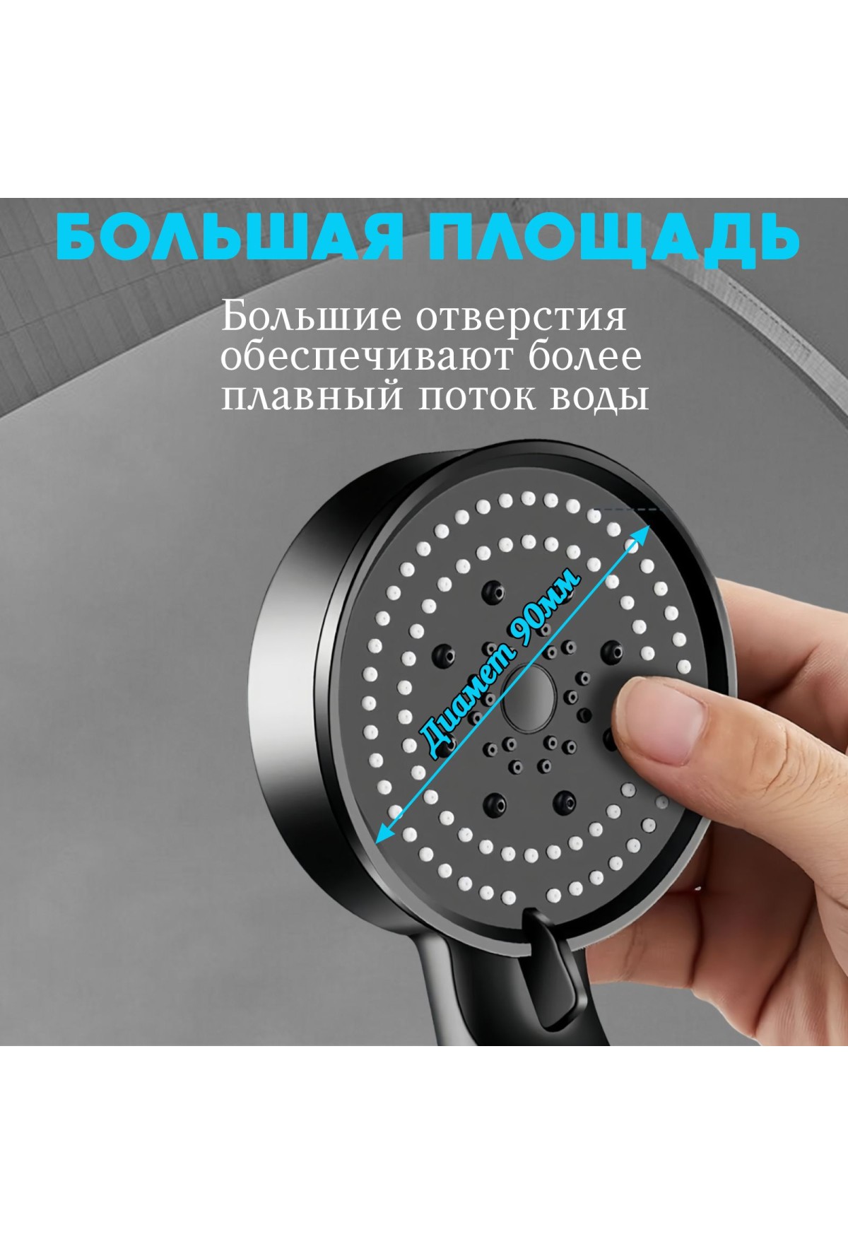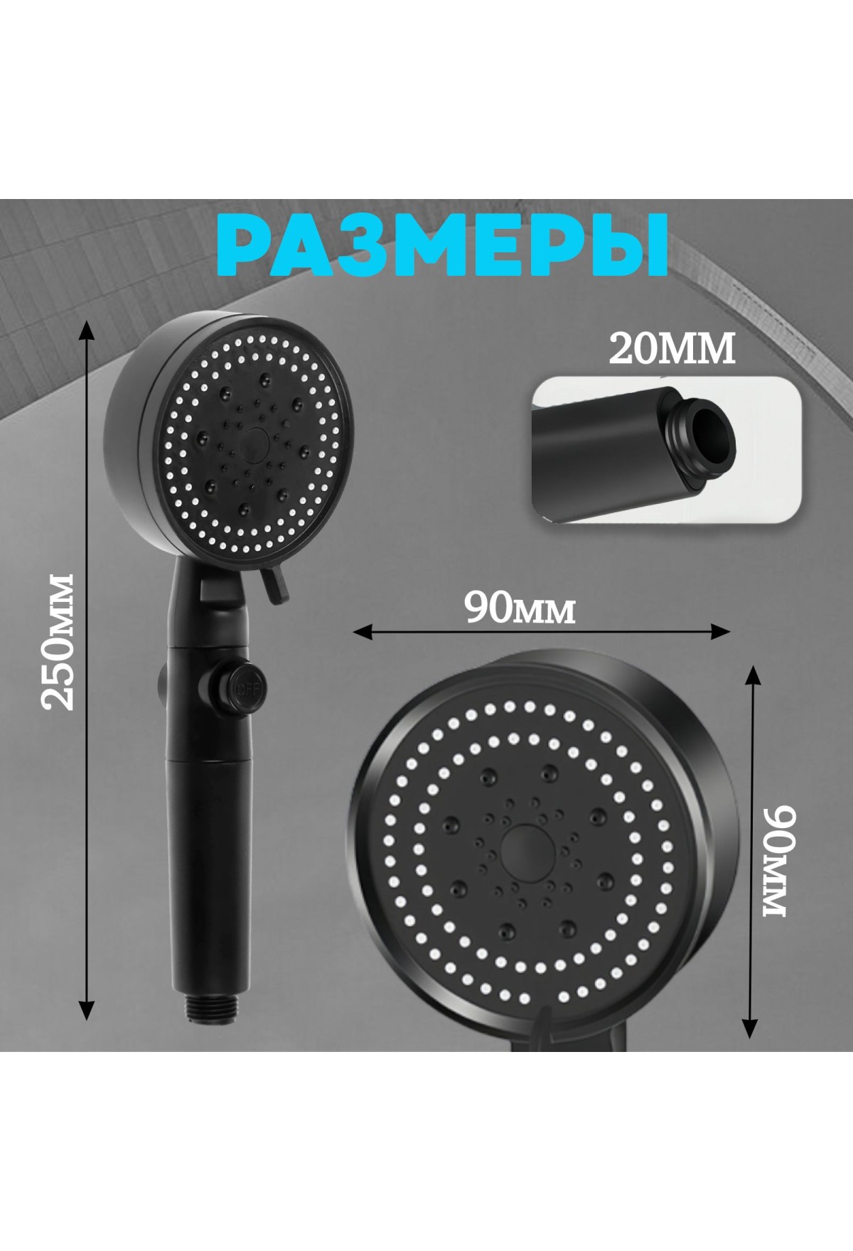 ХБ Лейка для душа со шлангом 1,5м и держателем, водосберегающая, 5 режимов, держатель для лейки, душевой комплект черный