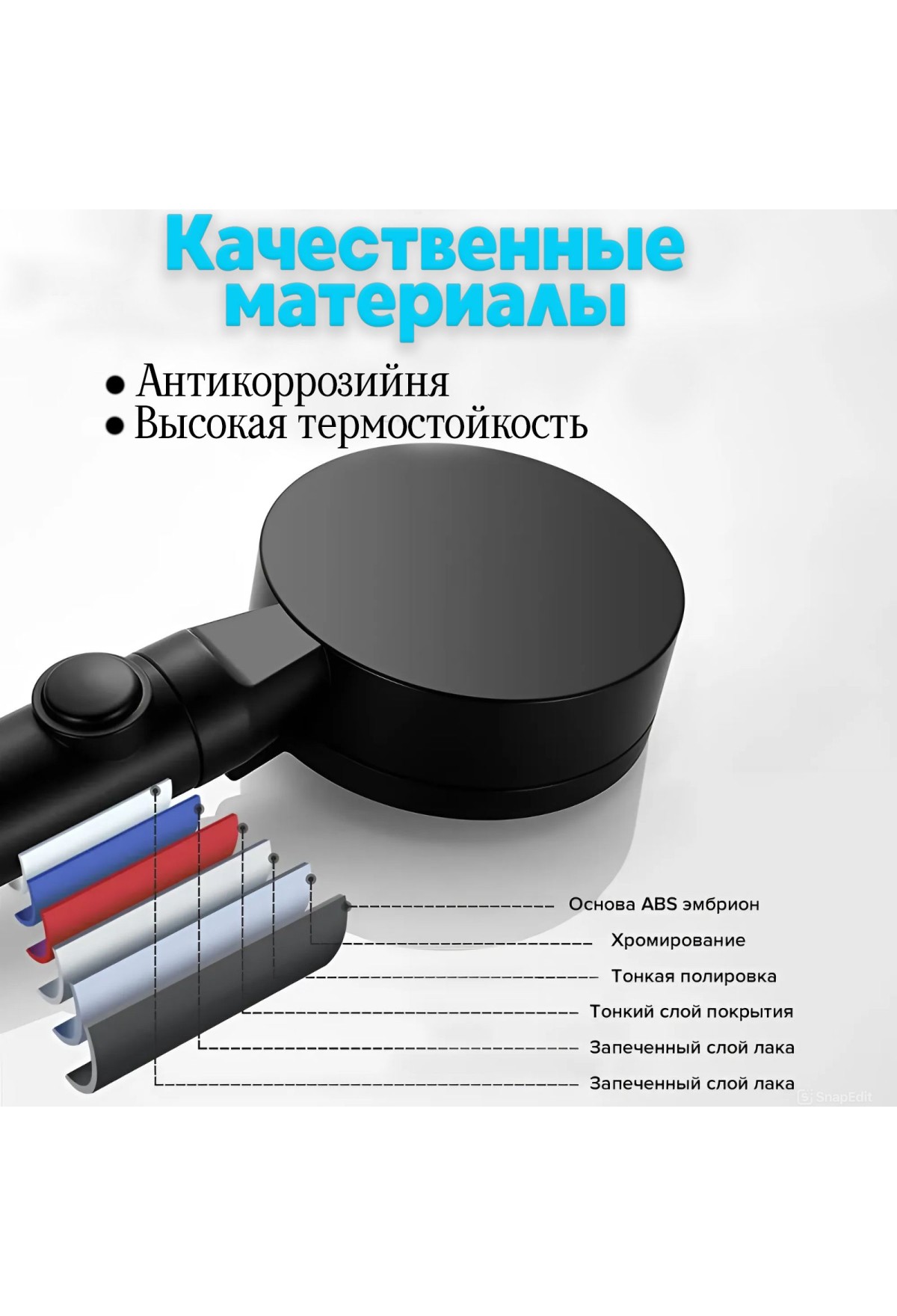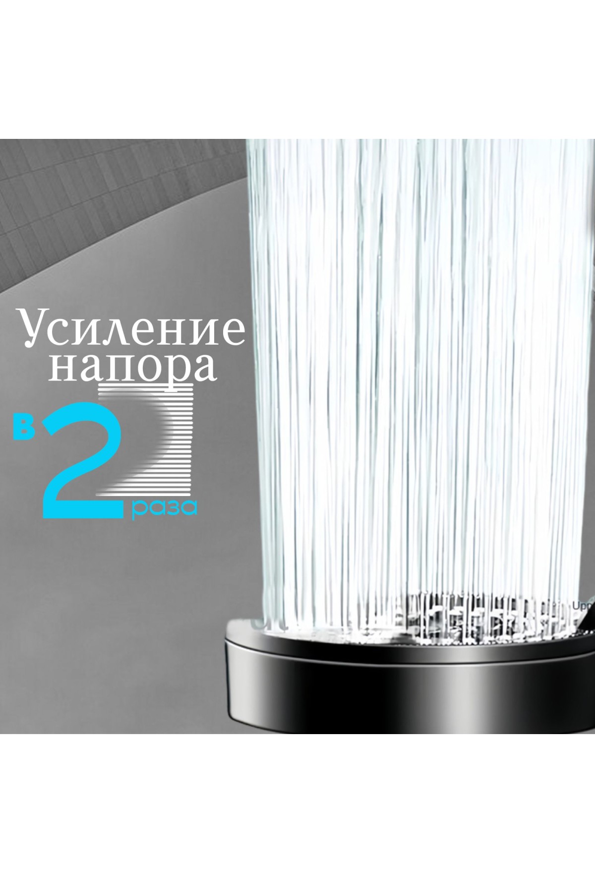 Турбо насадка изготовлена по немецкой технологии из высокопрочного АВС пластика, устойчивого к падениям, высоким температурам и коррозии, прослужит вам долгие годы! Включите экономный режим и большая круглая турболейка сильным напором равномерно распределит воду по всему телу. Это позволит вам быстро смыть гель для душа, уменьшить расход воды и достигнуть экономии до 40%. Универсальная лейка подходит для любой системы сантехники и может быть установлена в комплект со шлангом и краном в любую душевую кабину.