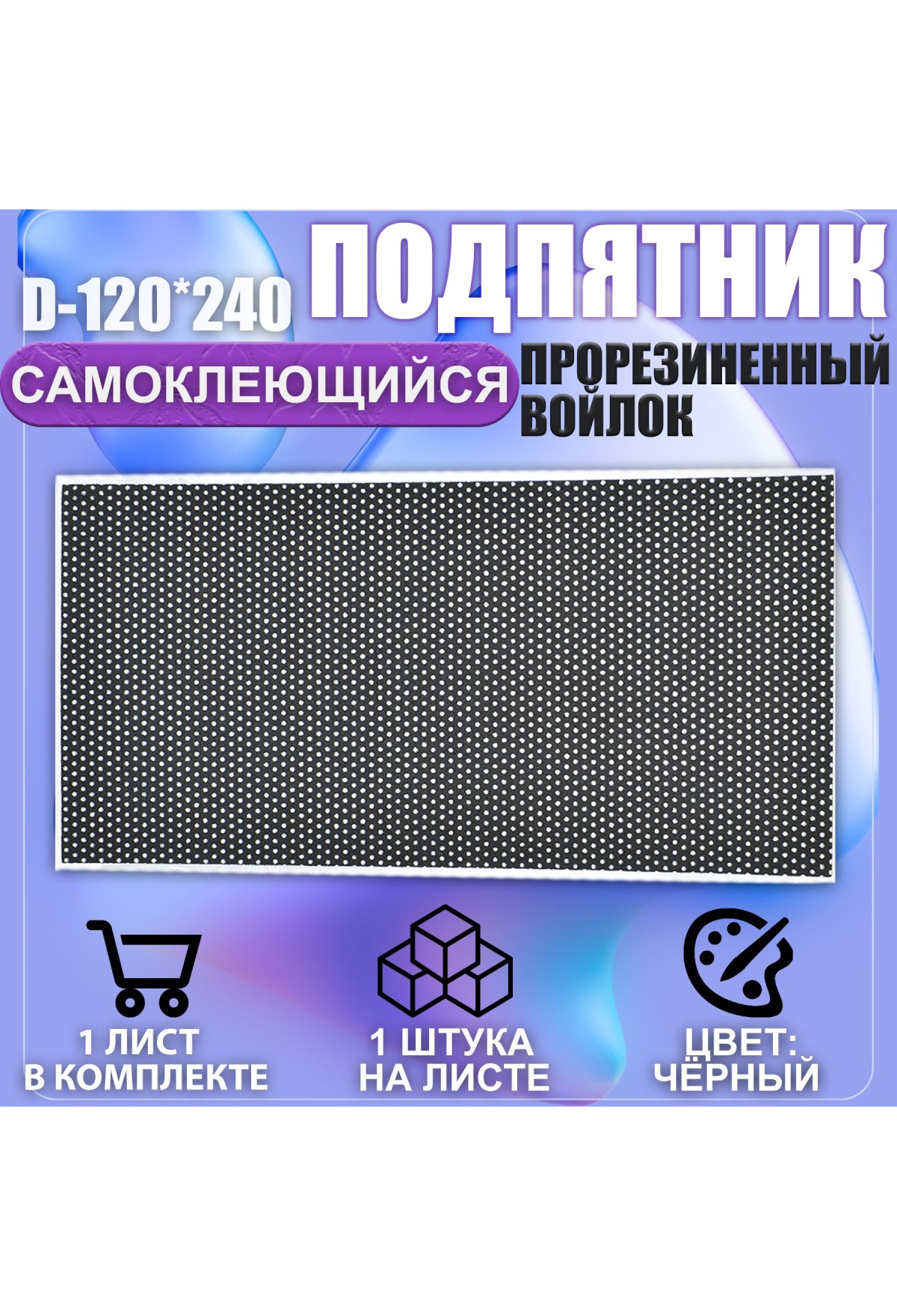 Накладки на ножки самоклеящиеся , протекторы , подпятники мебельные 120*240мм чёрный 1шт