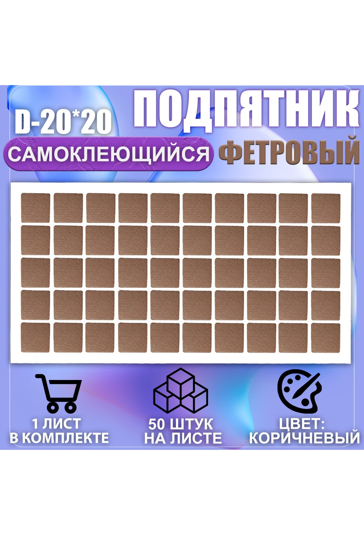 Накладки на ножки самоклеящиеся , протекторы , подпятники мебельные 20*20мм коричневый 50шт
