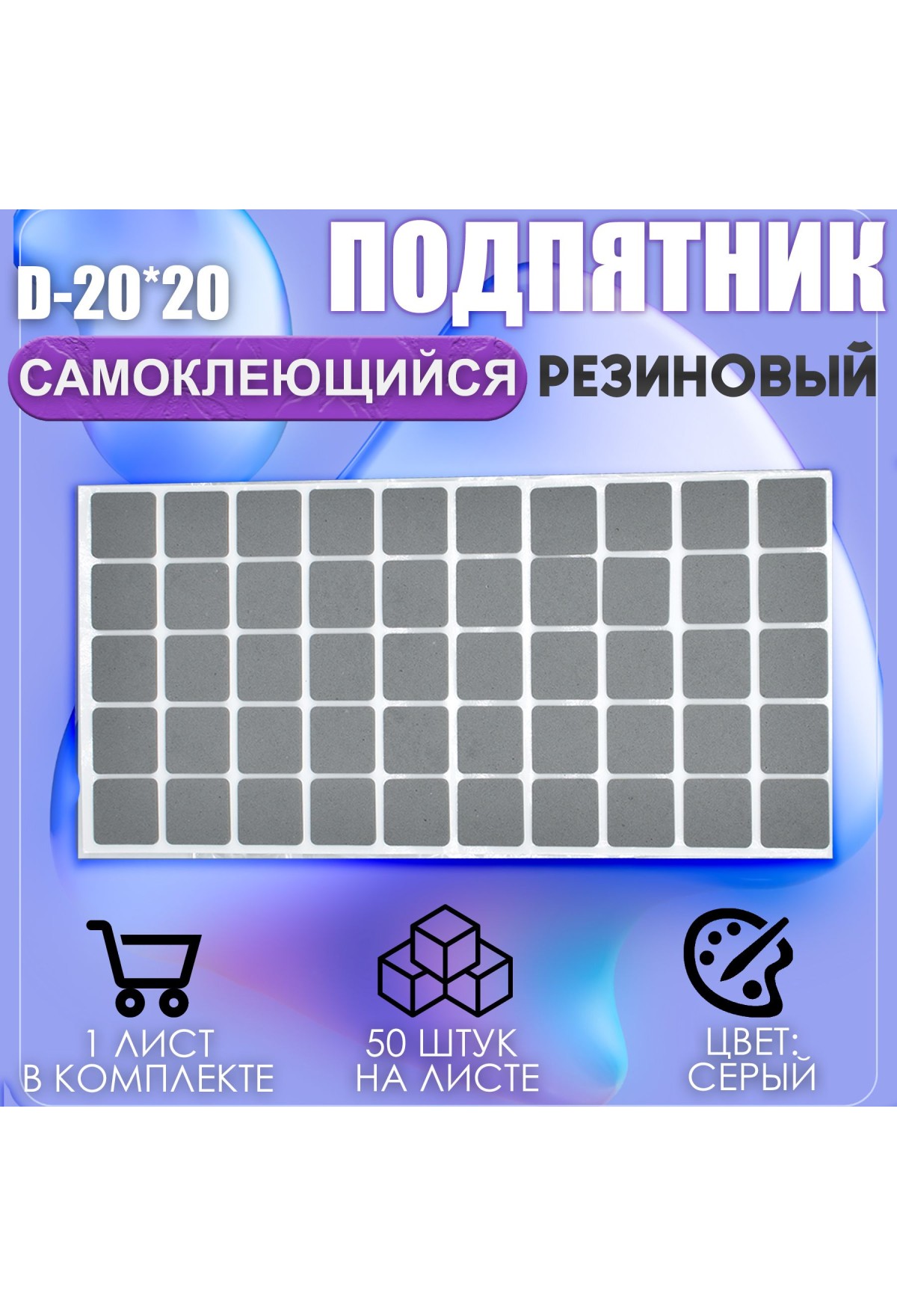 Накладки на ножки самоклеящиеся , протекторы , подпятники мебельные 20*20мм серый 50шт