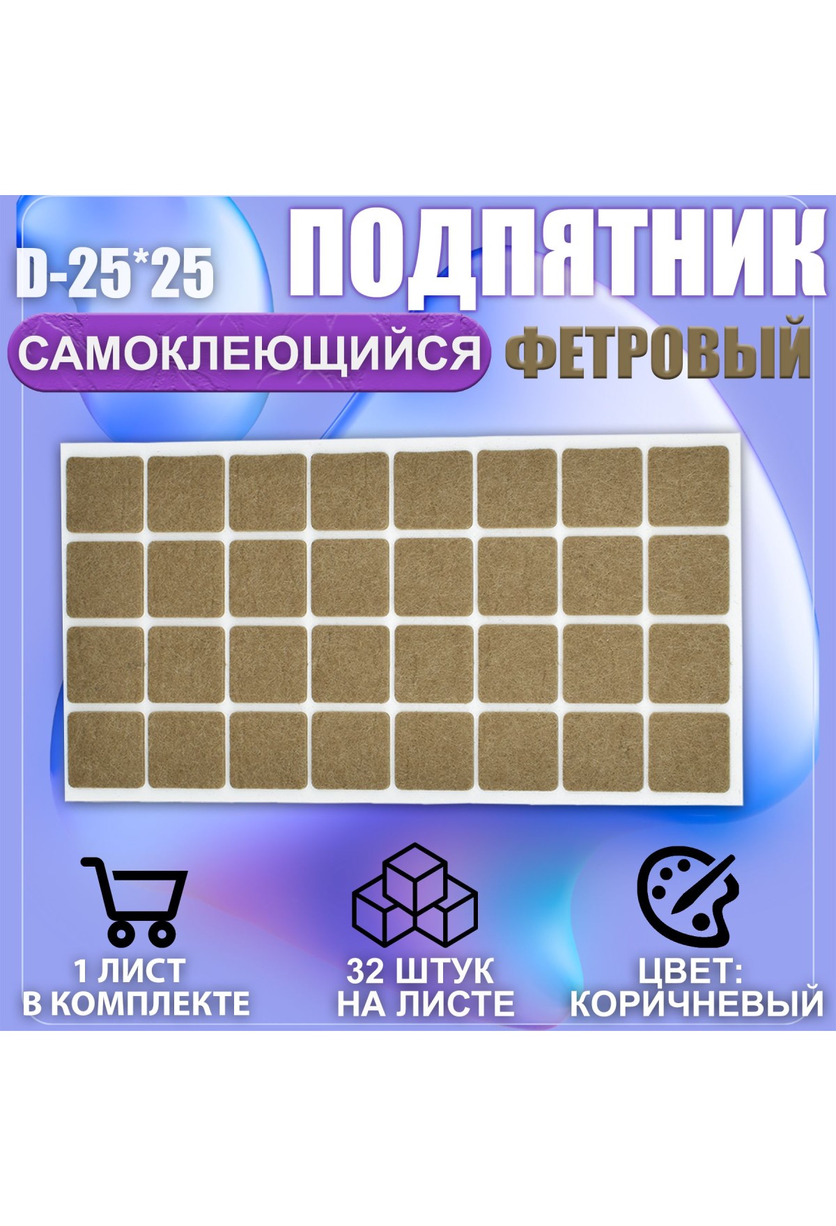 Накладки на ножки самоклеящиеся , протекторы , подпятники мебельные 25*25мм коричневый 32шт