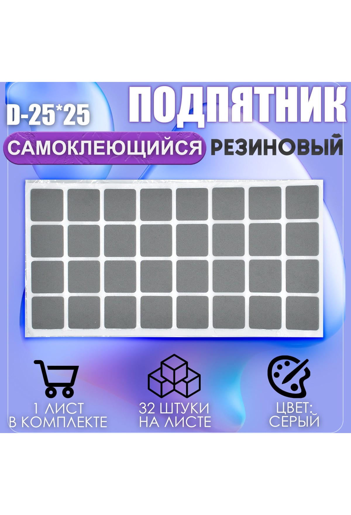 Накладки на ножки самоклеящиеся , протекторы , подпятники мебельные 25*25мм серый 32шт