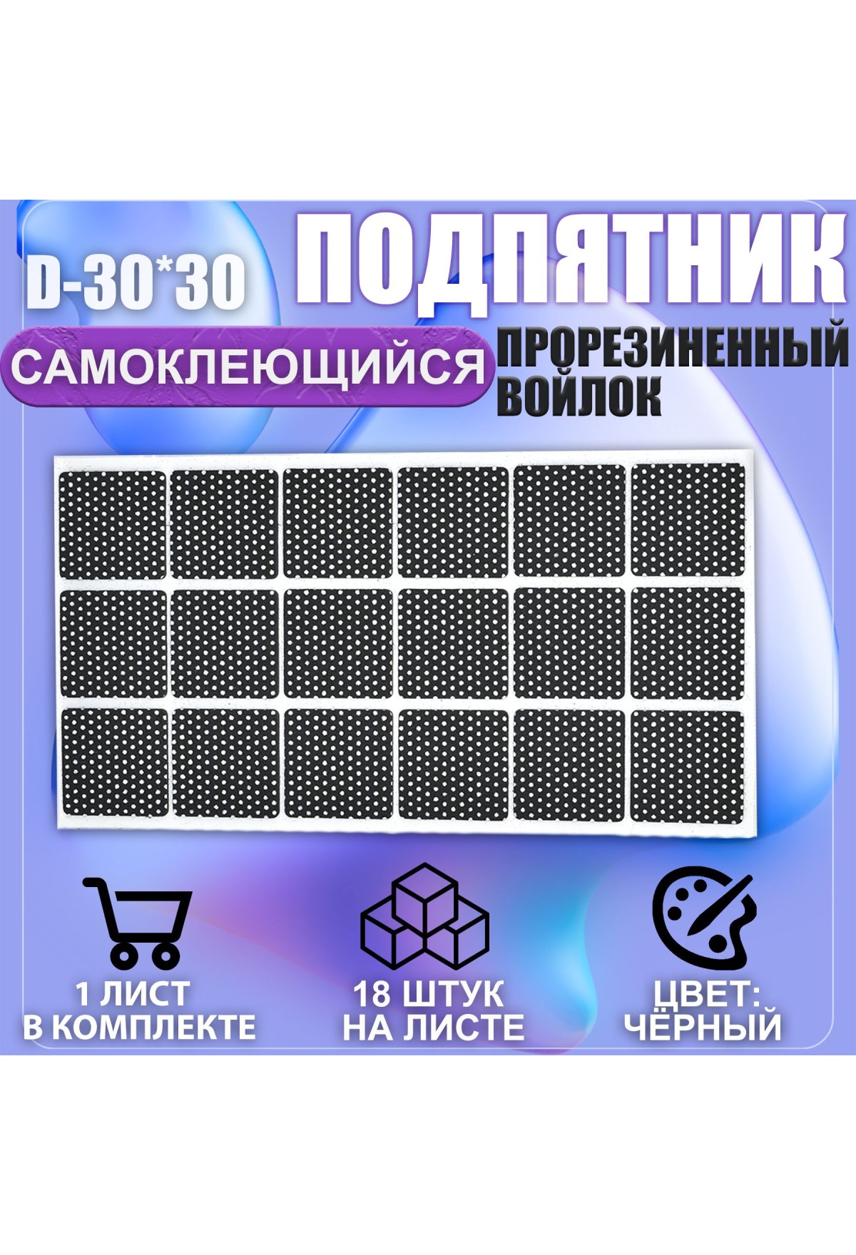 Накладки на ножки самоклеящиеся , протекторы , подпятники мебельные 30*30мм чёрный 18шт