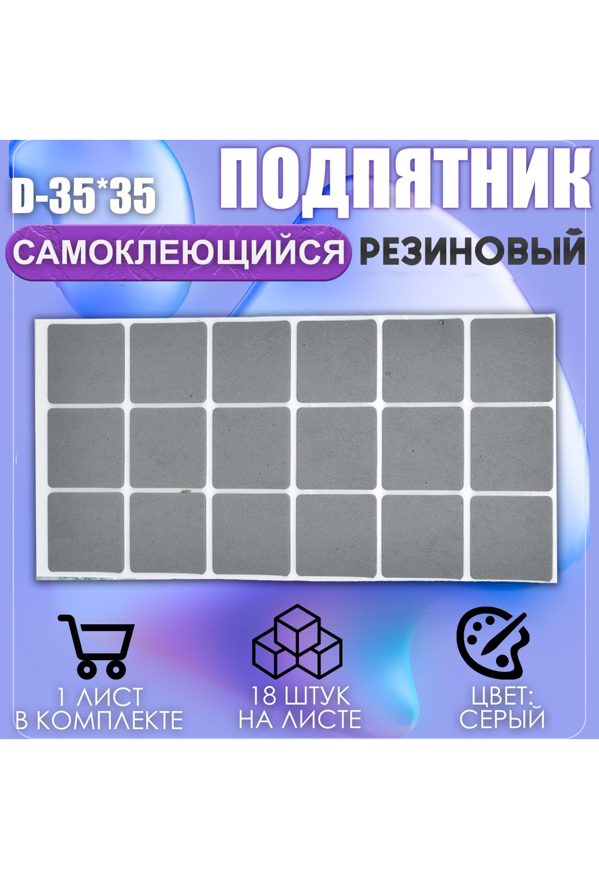 Накладки на ножки самоклеящиеся , протекторы , подпятники мебельные 35*35мм серый 18шт