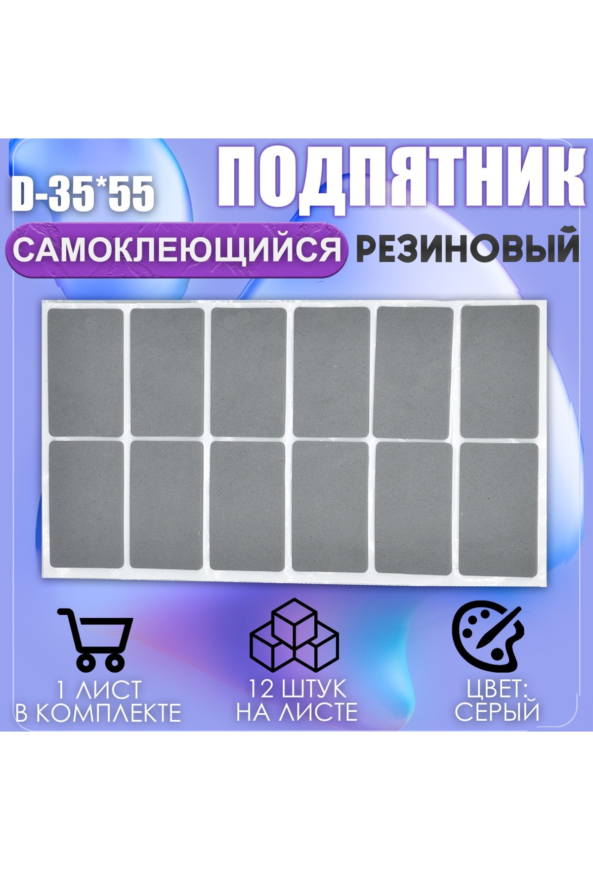 Накладки на ножки самоклеящиеся , протекторы , подпятники мебельные 35*55мм серый 12шт