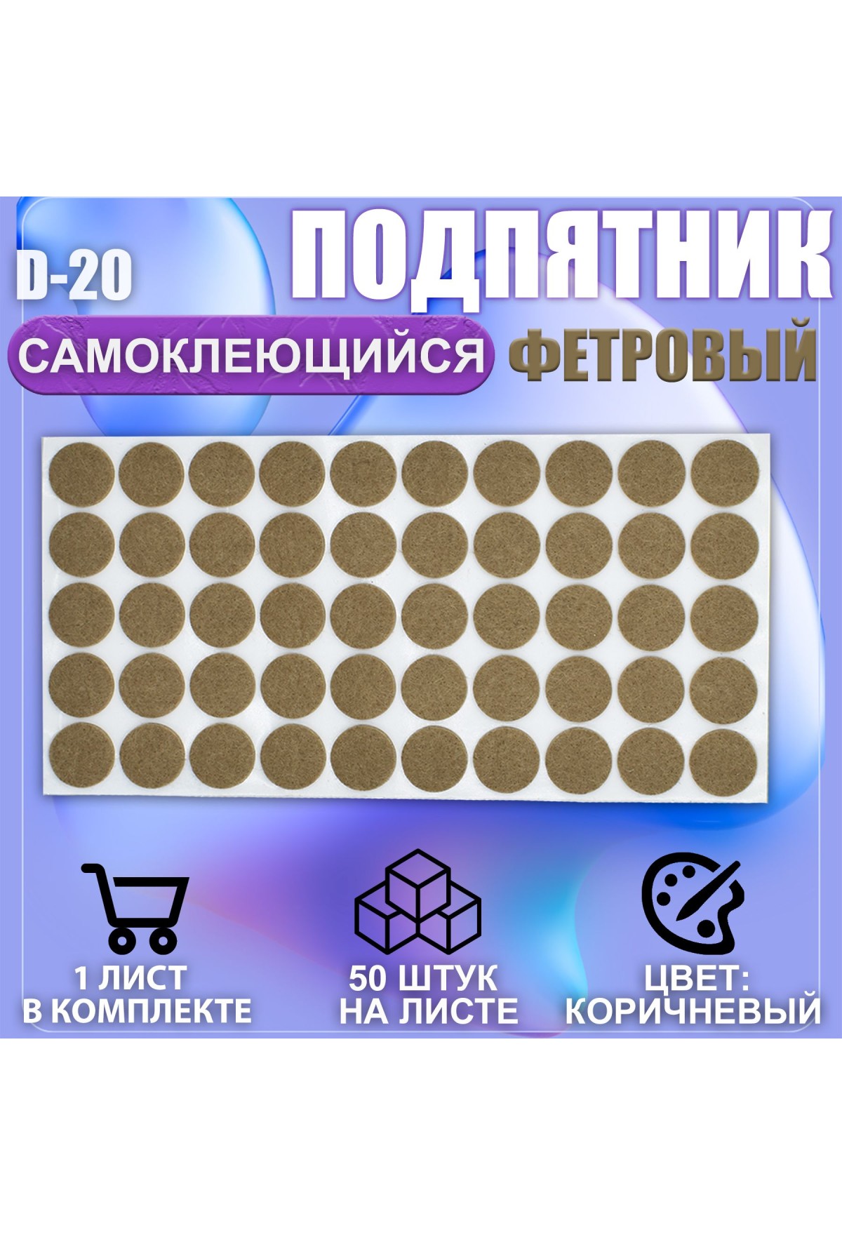 Накладки на ножки самоклеящиеся , протекторы , подпятники мебельные d-20мм коричневый 50шт