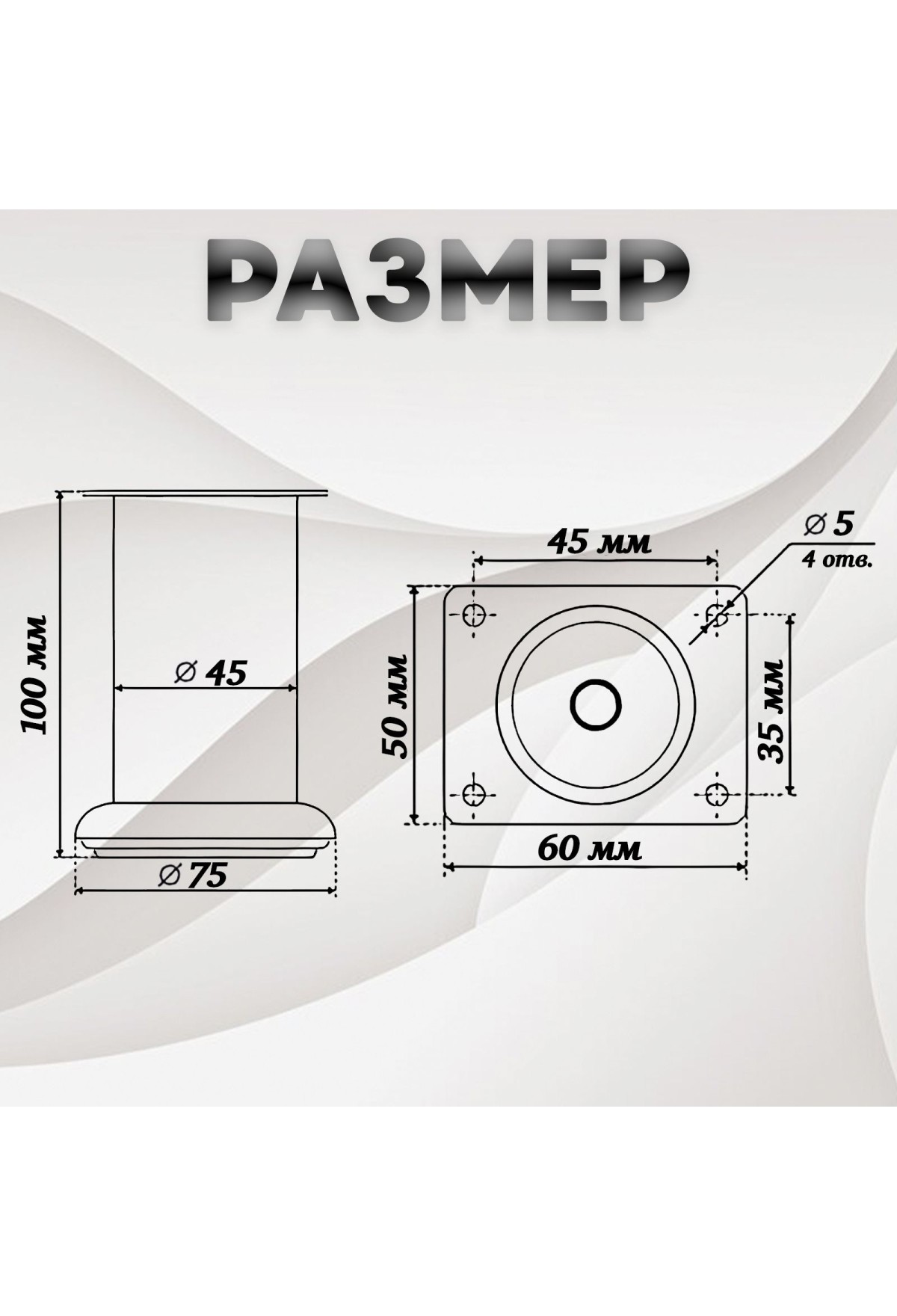 Мебельные опоры -подойдут для любой мебели (для кровати, дивана, тумбочки, комода, пуфа). Диаметр трубы: 45мм. Рабочая высота: 100мм. Ножки мебельные выполнены из хромированной стали (стали, покрытой черной полимерной краской). Усиленная верхняя площадка толщиной 1,5 мм. Конструкция мебельной опоры позволяет выдерживать нагрузку до 200 кг. на 4 опоры. Пластиковый подпятник выполнен из качественного полипропилена. Хромированная опора имеет широкий спектр применения в производстве корпусной и мягкой мебели. Опора имеет устойчивую, простую и надежную конструкцию, проста в установке. Разборная, что позволяет крепить отдельно площадку в труднодоступных местах и далее собрать не повреждая опору. В комплекте 4 Опоры хромированные, крепеж входит в комплект.