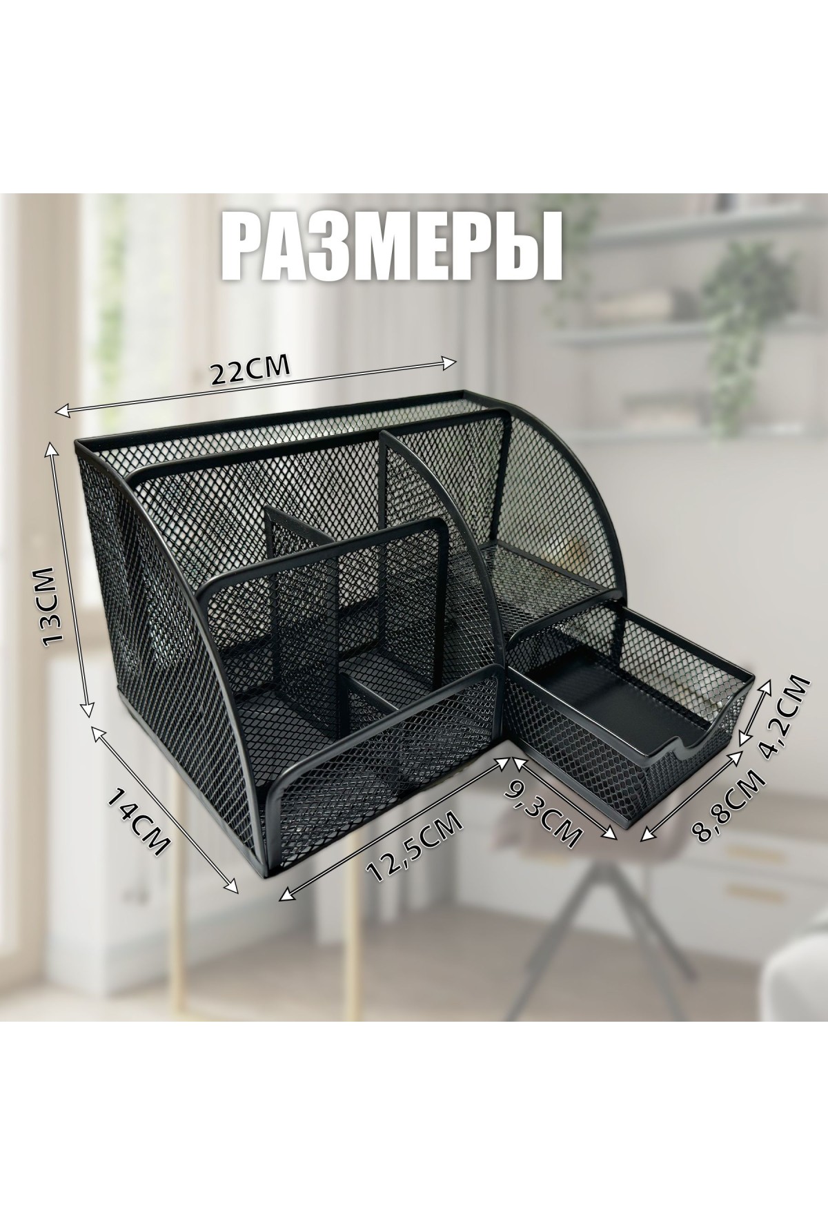 • ХБ Органайзер для канцелярии настольный , подставка для ручек и карандашей, 7 ячеек металлическая, 22х13х14 см, цвет черный
