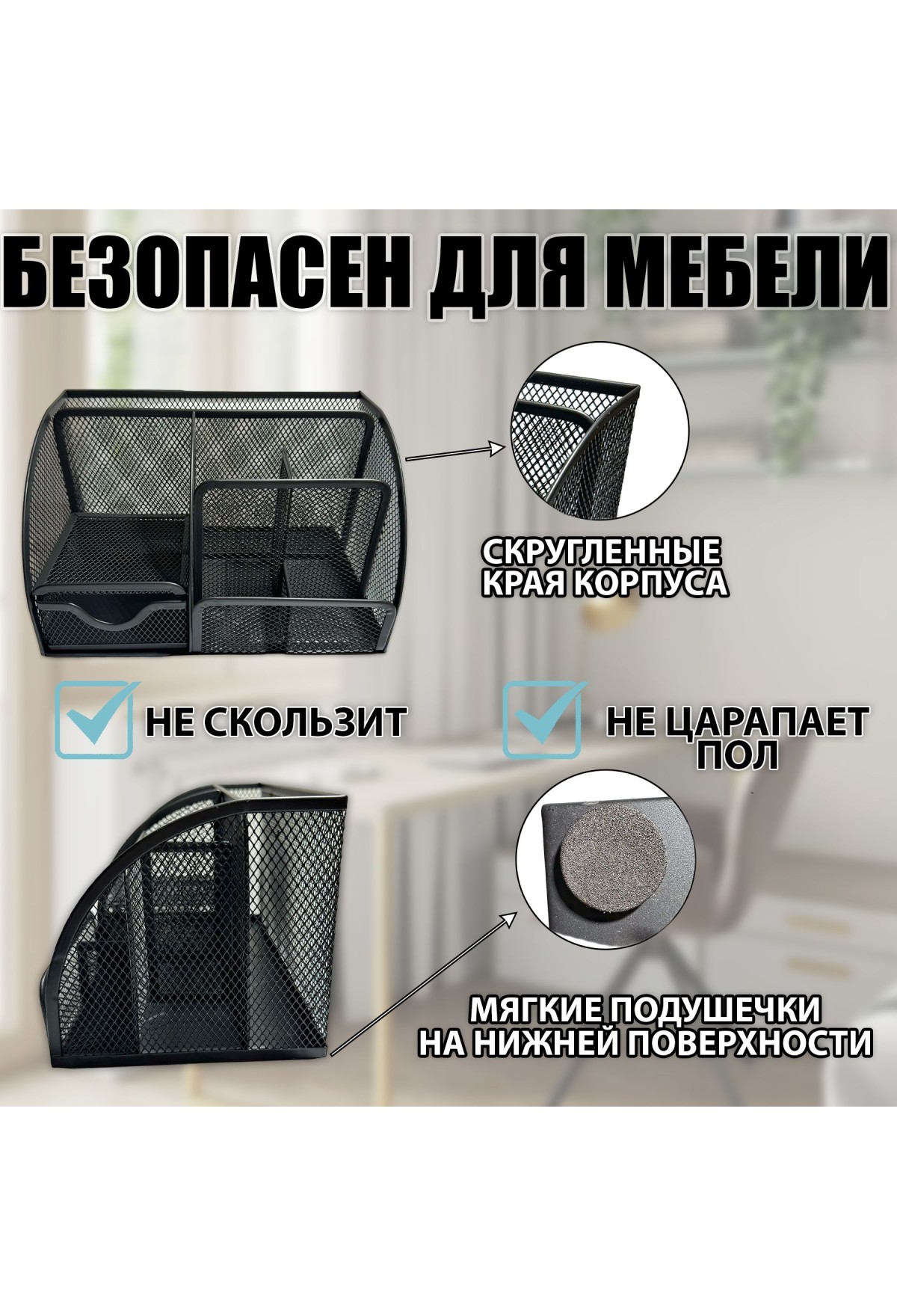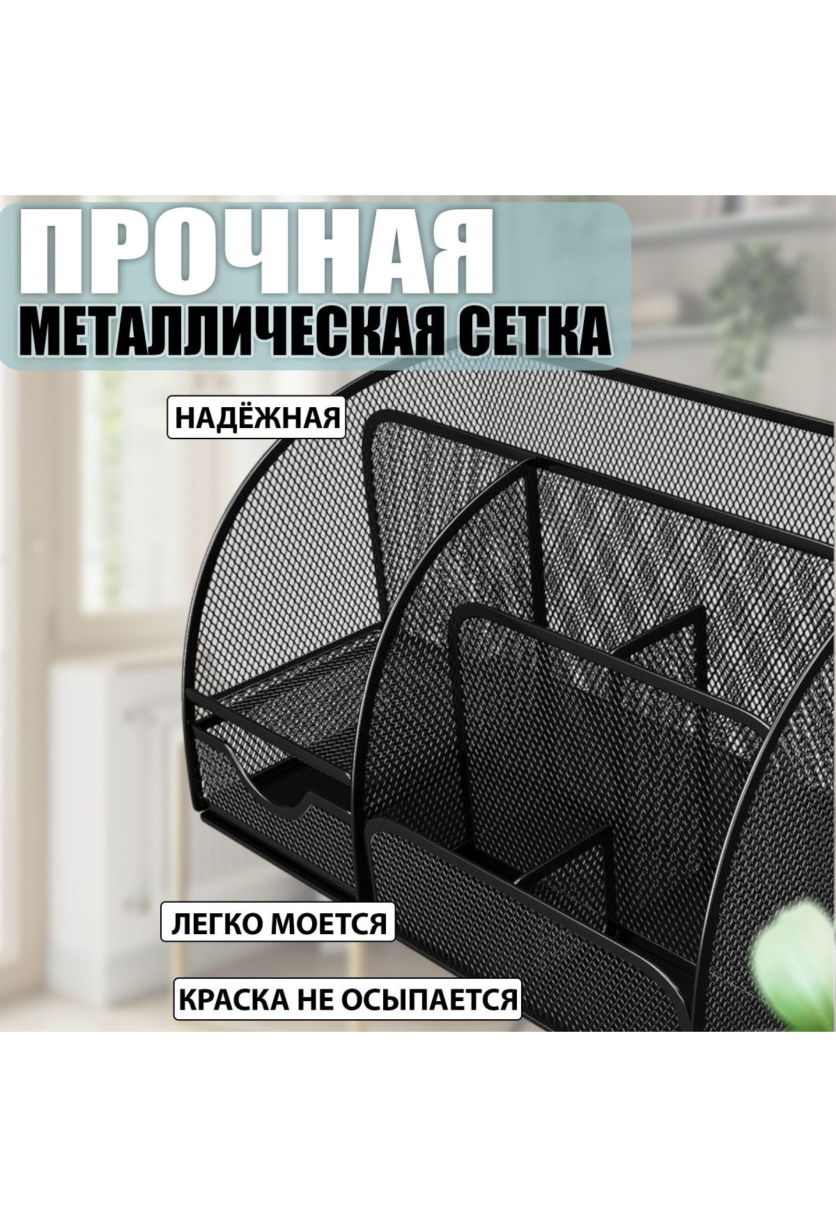 Эта подставка станет отличным помощником как в офисе, так и дома. Она поможет вам организовать свои рабочие принадлежности так, чтобы все было под рукой и в порядке. Благодаря компактным размерам она не займет много места на вашем столе, а черный цвет подойдет к любому интерьеру.