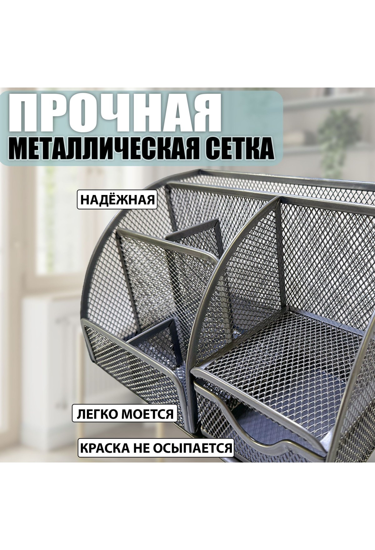 Цвет подставки для ручек и карандашей придаст вашему рабочему пространству стильный и солидный вид. Благодаря семи секциям вы сможете удобно хранить ручки, карандаши, маркеры, стикеры, скотч, скрепки и другие мелочи, необходимые в повседневной работе. Подставка металлическая поможет вам быстро найти нужный предмет, не тратя время на поиск.