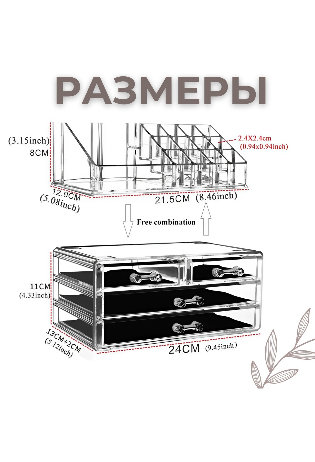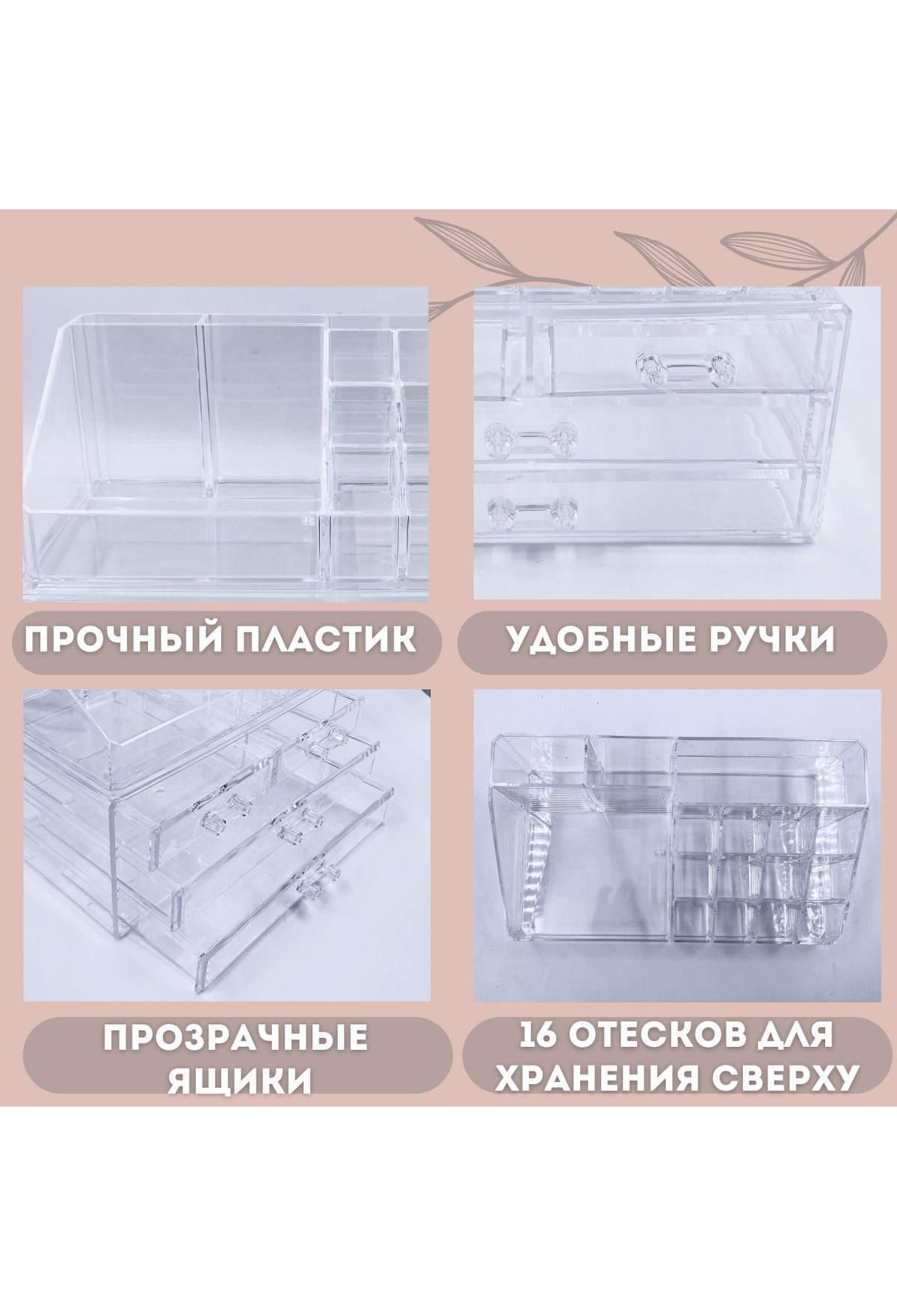 Изготовленный из прочного пластикового материала, органайзер легко моется и долговечен. Его стильный дизайн и прозрачные отделения позволят вам всегда видеть, где находится нужный предмет, не открывая каждый раз все ящики.