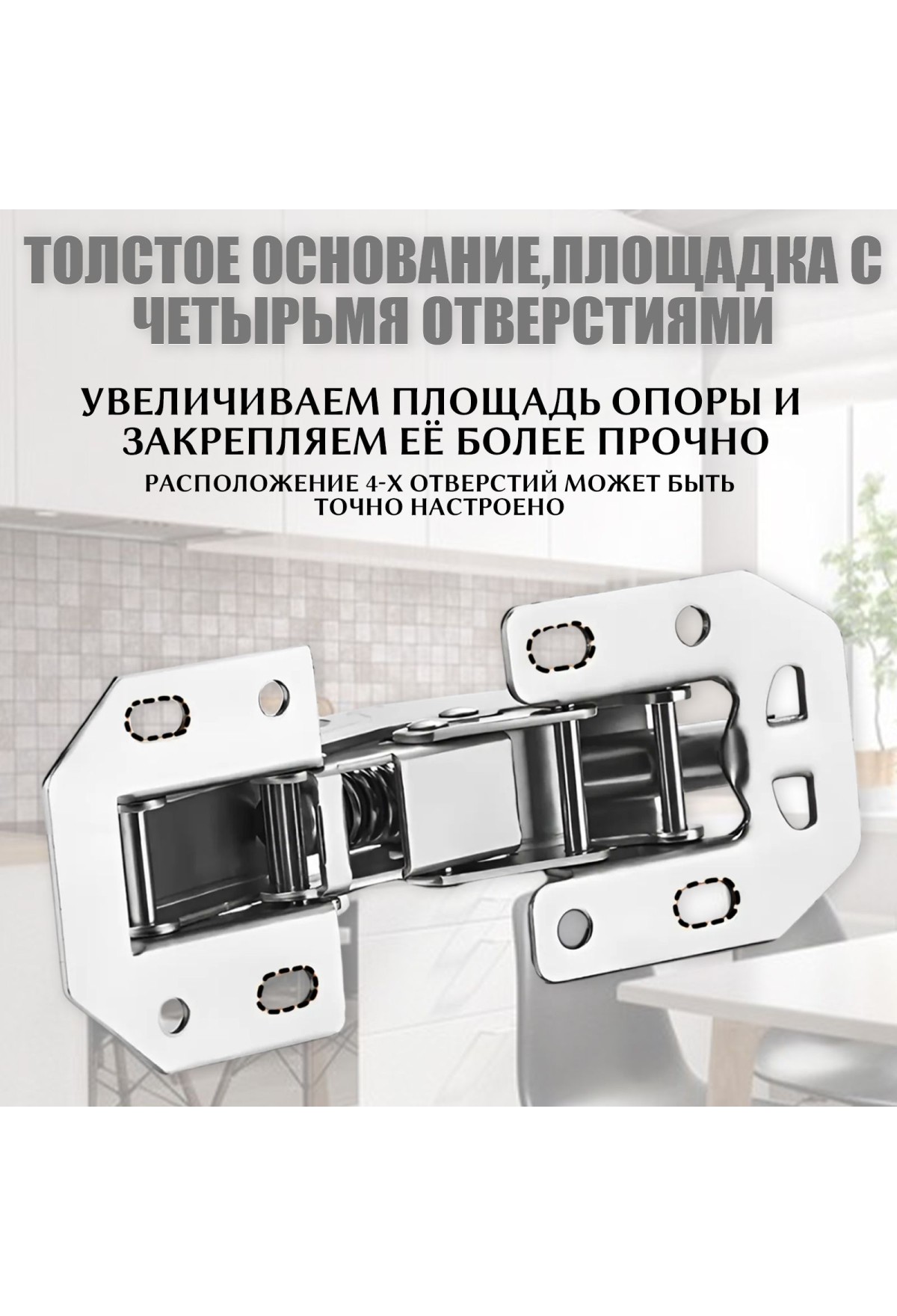 Петли мебельные 8-ми шарнирные с доводчиком - это незаменимый элемент мебельного производства. Имея петли Лягушка быстрого монтажа вы сможете с легкостью установить дверь шкафа или другую мебель, не прибегая к сложным монтажным работам. Эти петли предназначены для установки без врезки, что значительно упростит процесс сборки и сэкономит ваше время.