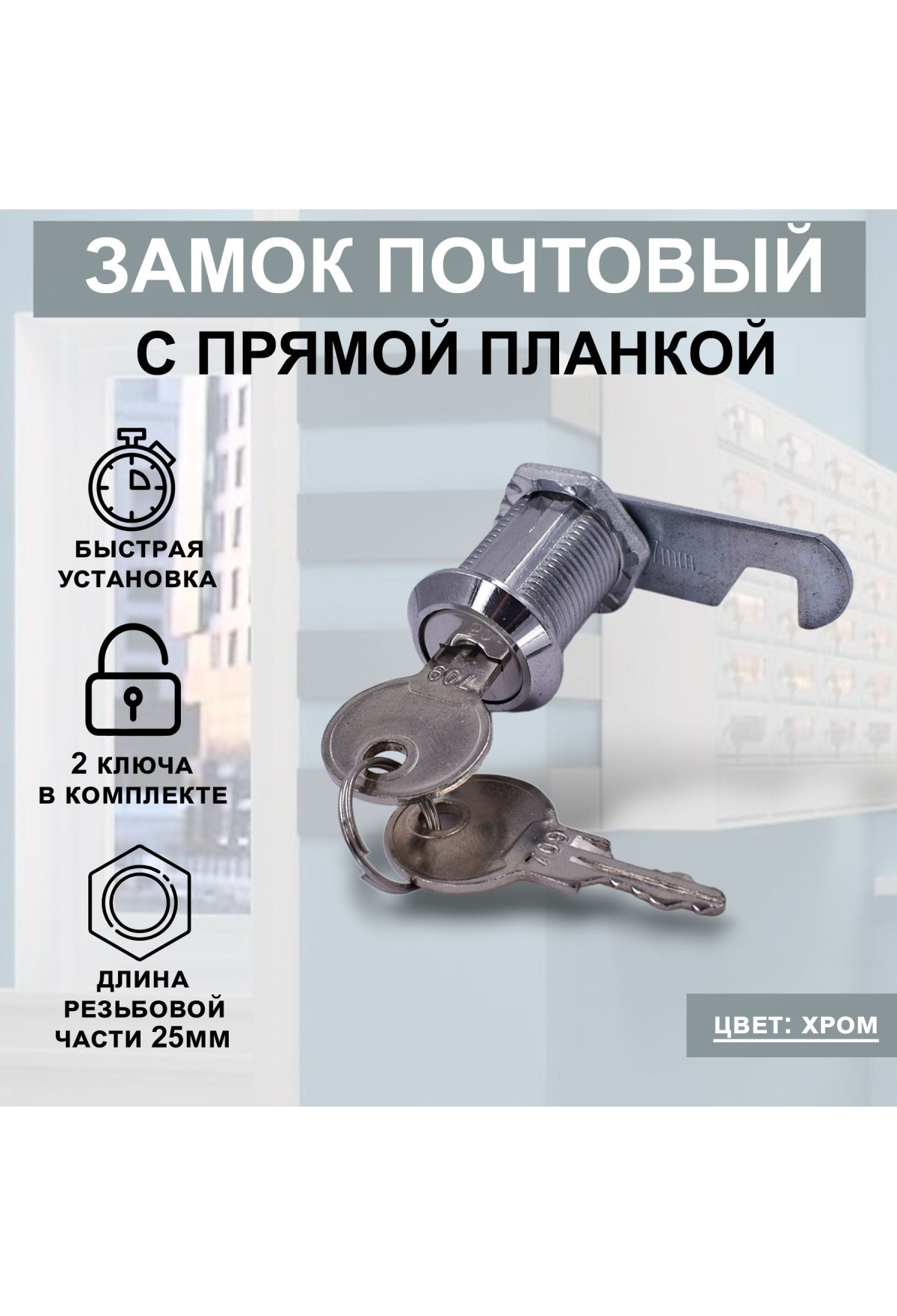 Почтовый замок врезной для ящиков, шкафов, электрощитов STANDART 25мм 2ключа 1шт