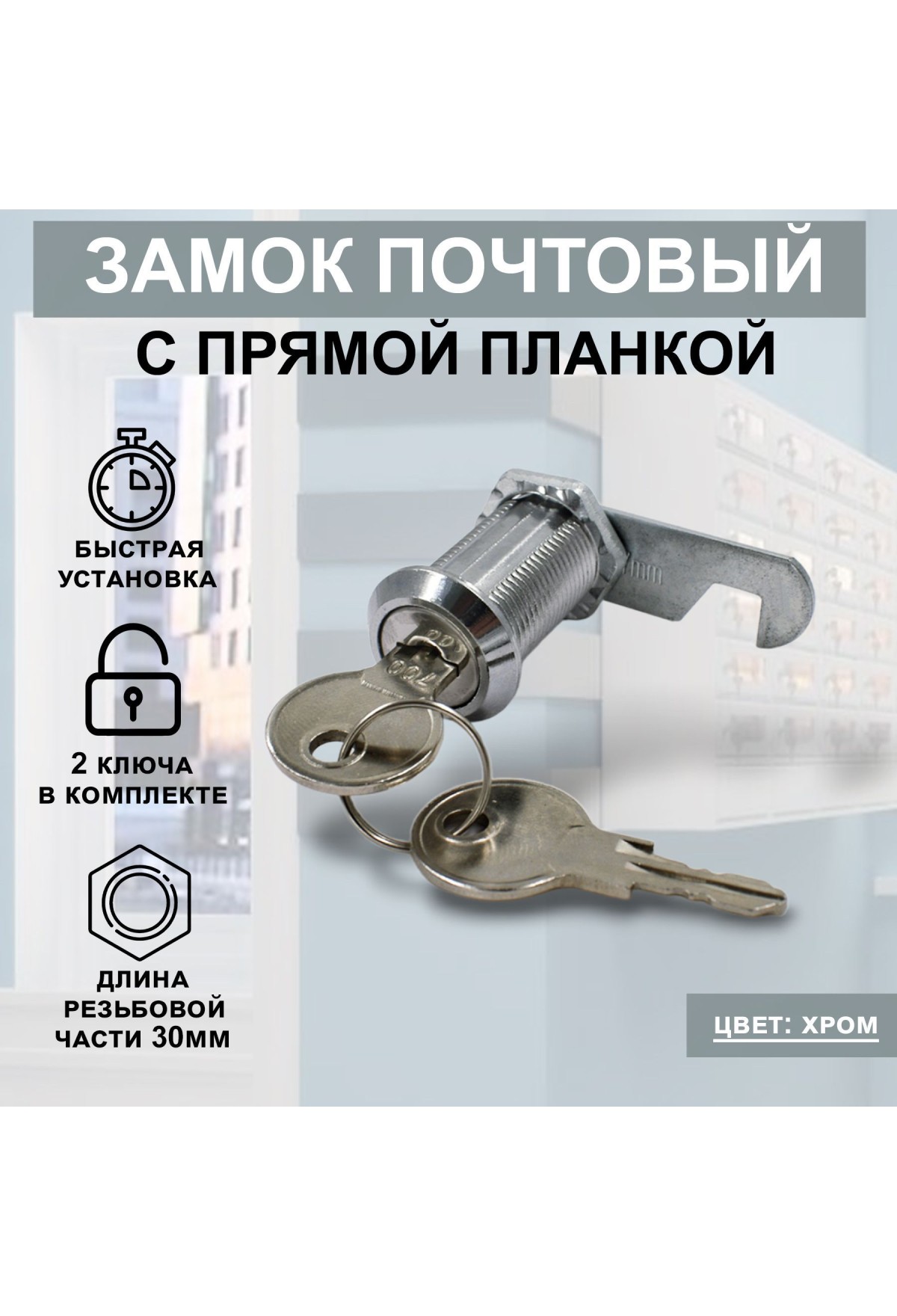 Почтовый замок врезной для ящиков, шкафов, электрощитов STANDART 30мм 2ключа 1шт