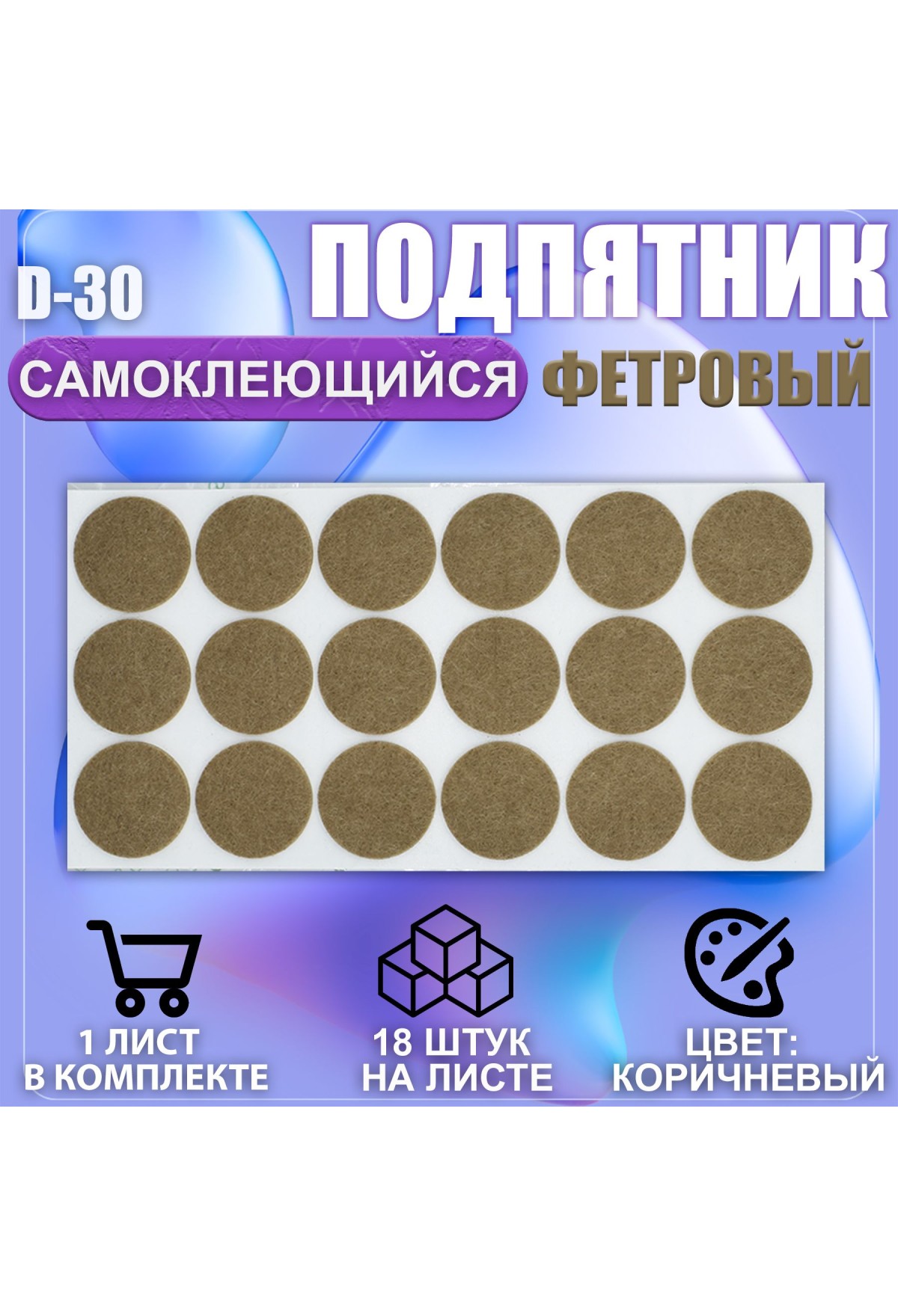 Подпятник протектор мебельный d-30мм коричневый 18шт