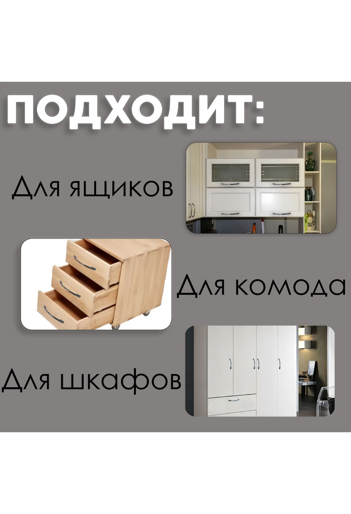 Наши ручки идеально подходят для ящиков, шкафов и другой мебели, обеспечивая простоту установки благодаря в комплекте имеющимся саморезам.