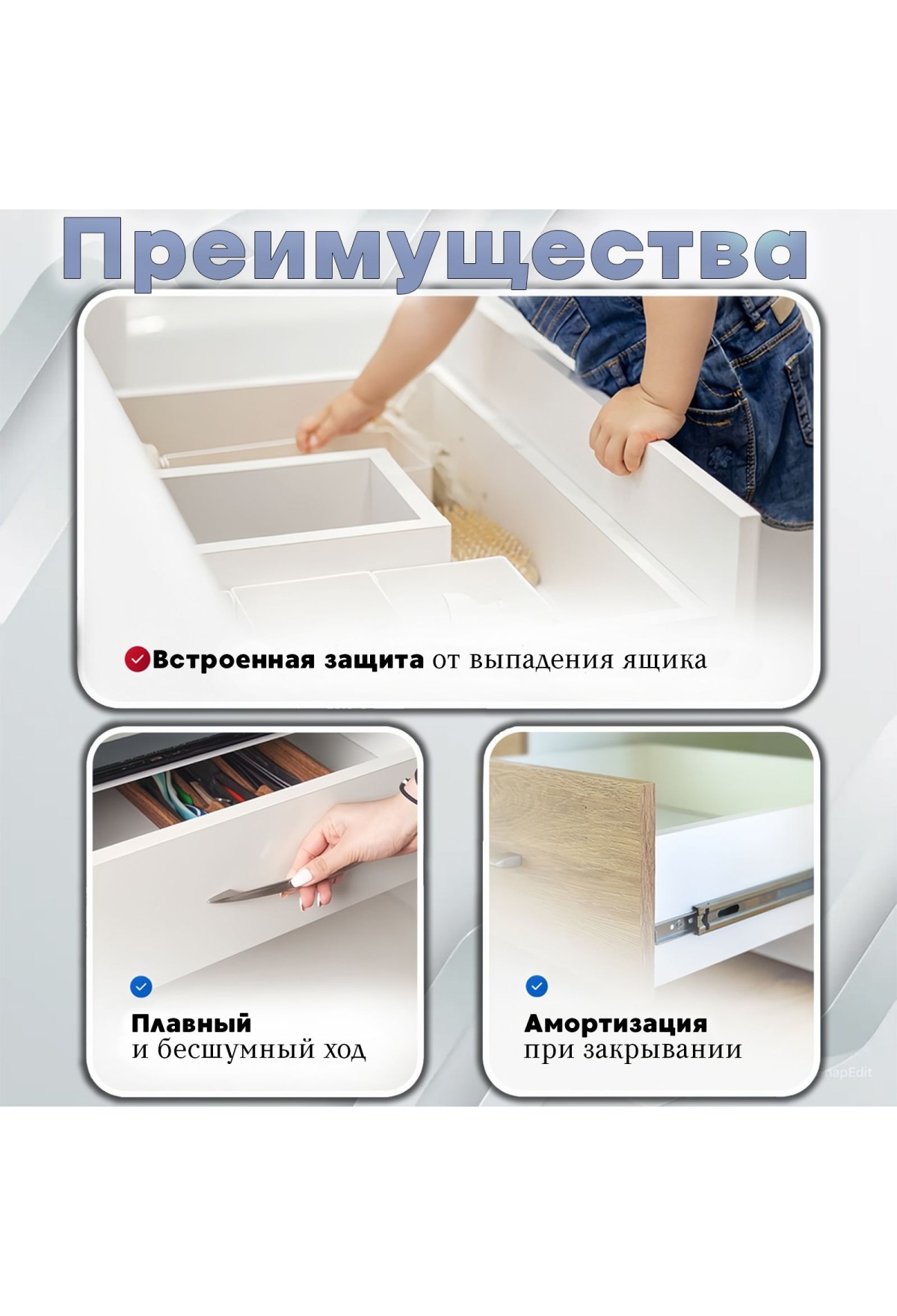 Шариковые направляющие обеспечивают плавное и бесшумное выдвижение ящиков, придавая вашим мебельным изделиям элегантность и функциональность. Эти уникальные направляющие не только максимально интегрируются в дизайн, но и обеспечивают полный выдвиг ящиков.