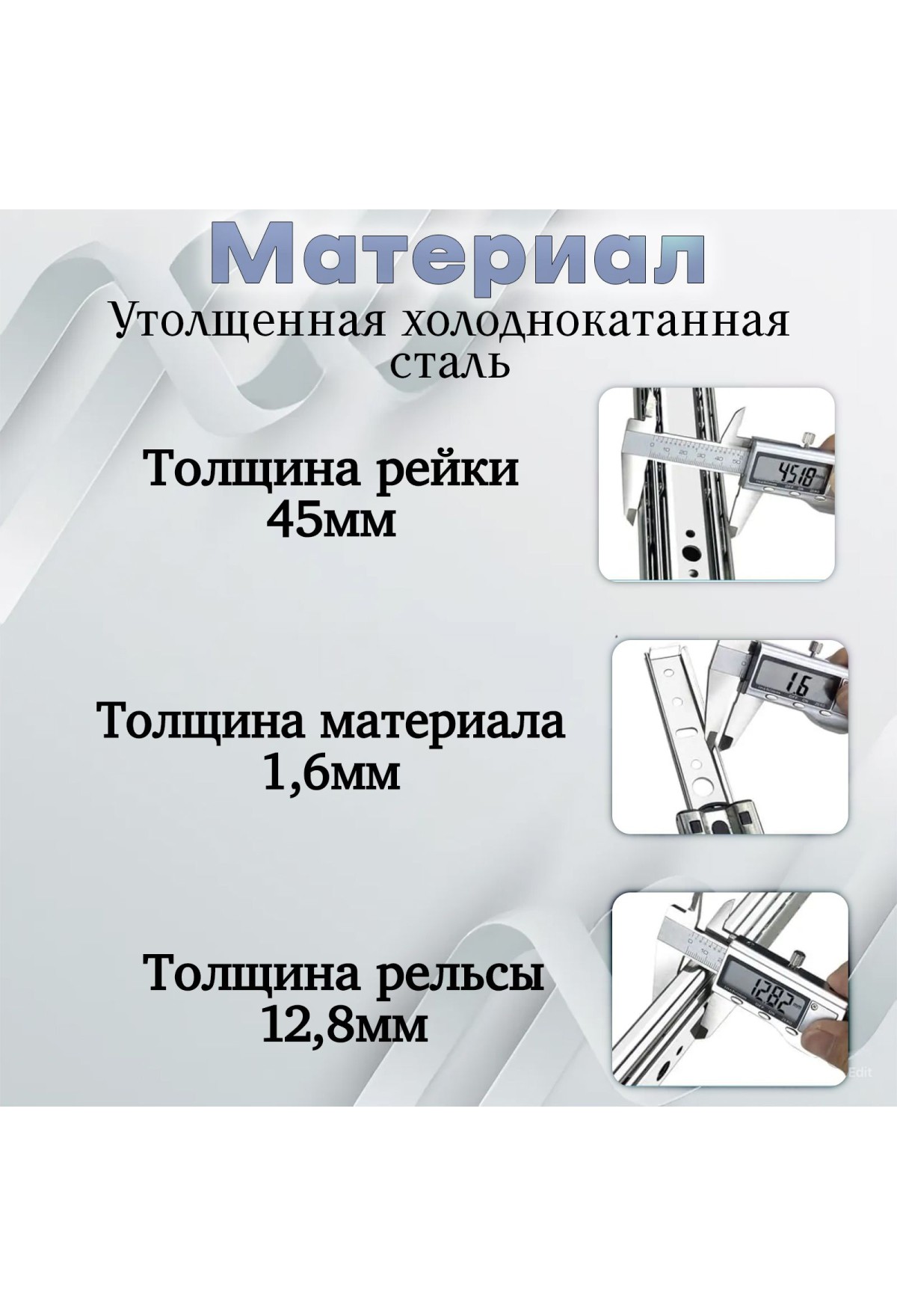 Подшипники направляющих смазаны специальной смазкой.Кроме того, надежный металл, из которого изготовлены направляющие, выдерживает нагрузку до 25кг.