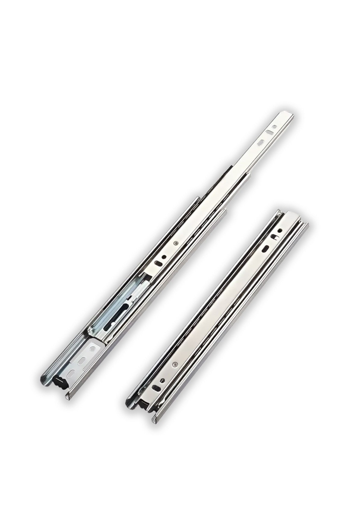 Шариковые направляющие обеспечивают плавное и бесшумное выдвижение ящиков, придавая вашим мебельным изделиям элегантность и функциональность. Эти уникальные направляющие не только максимально интегрируются в дизайн, но и обеспечивают полный выдвиг ящиков.