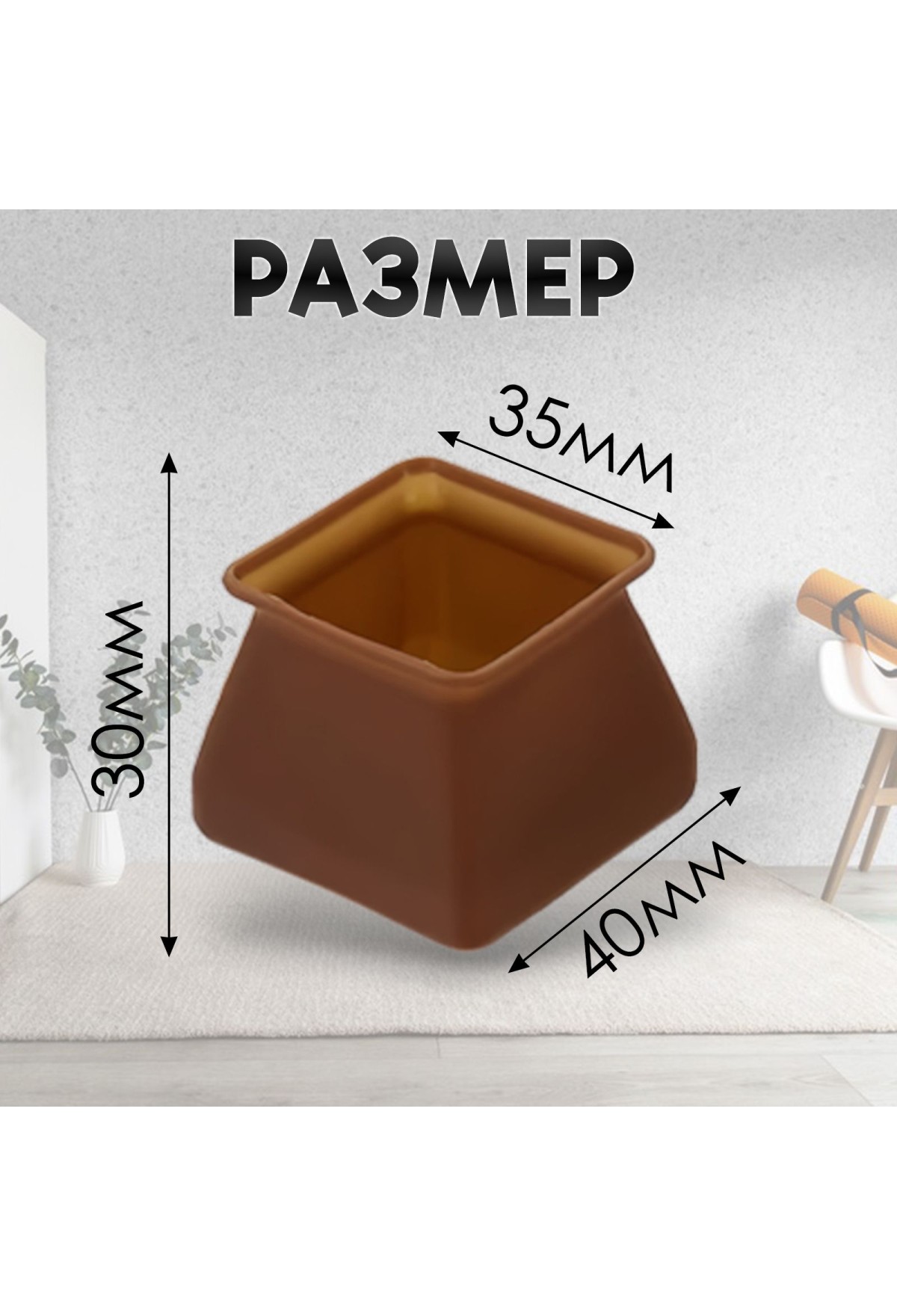 Защитные накладки, протекторы, чехлы силиконовые на ножки стола, стула, комода 40*40мм Коричневый 8шт