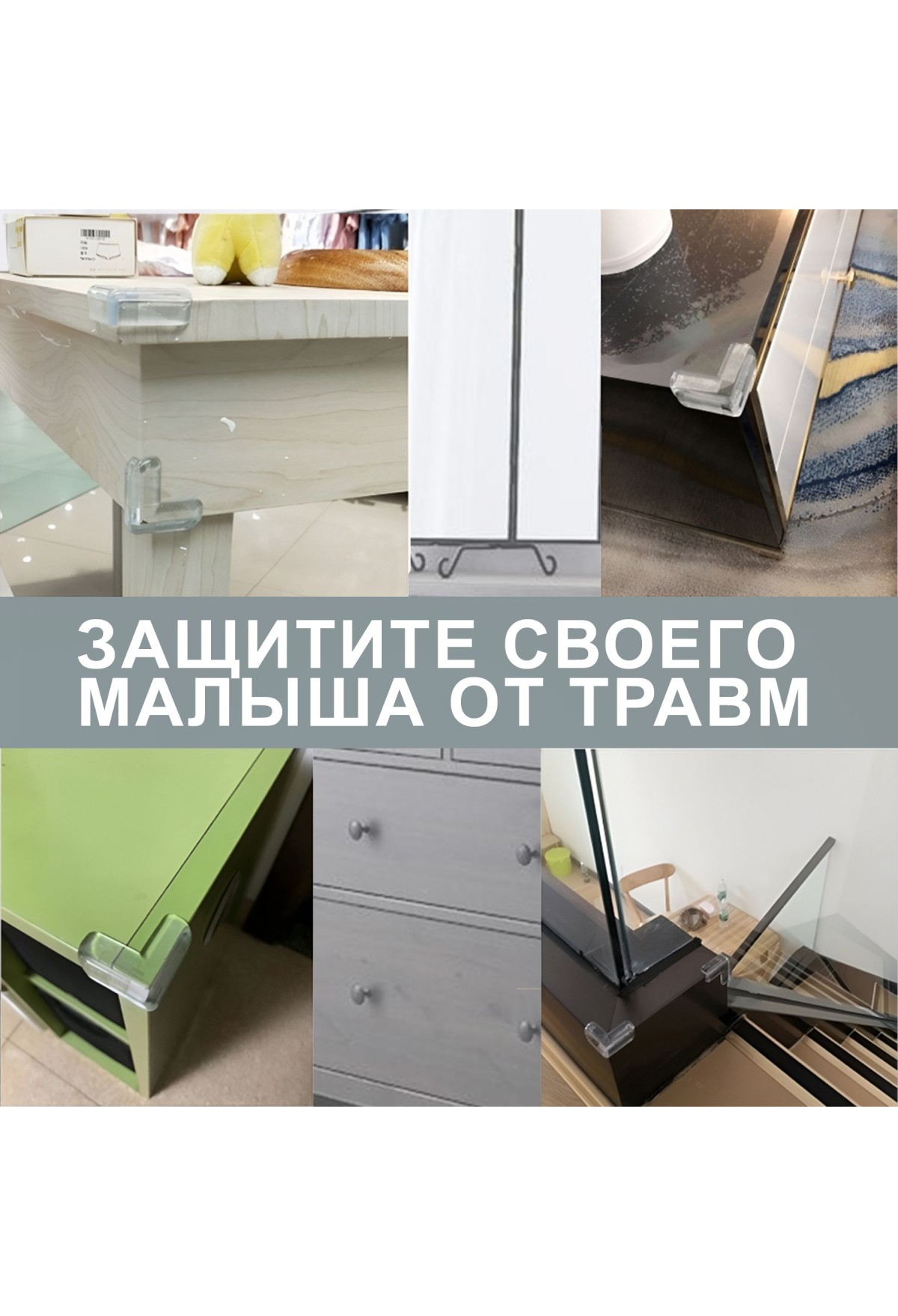 Защитные уголки на мебель - силиконовые накладки на стол (защита для детей), уголок , 12 шт, цвет прозрачный