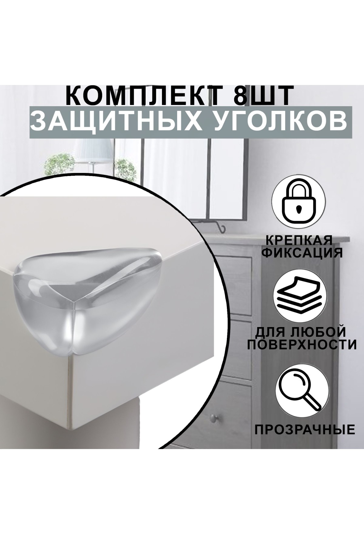 Защитные уголки на мебель - силиконовые накладки на стол (защита для детей), уголок, 8 шт, цвет прозрачный
