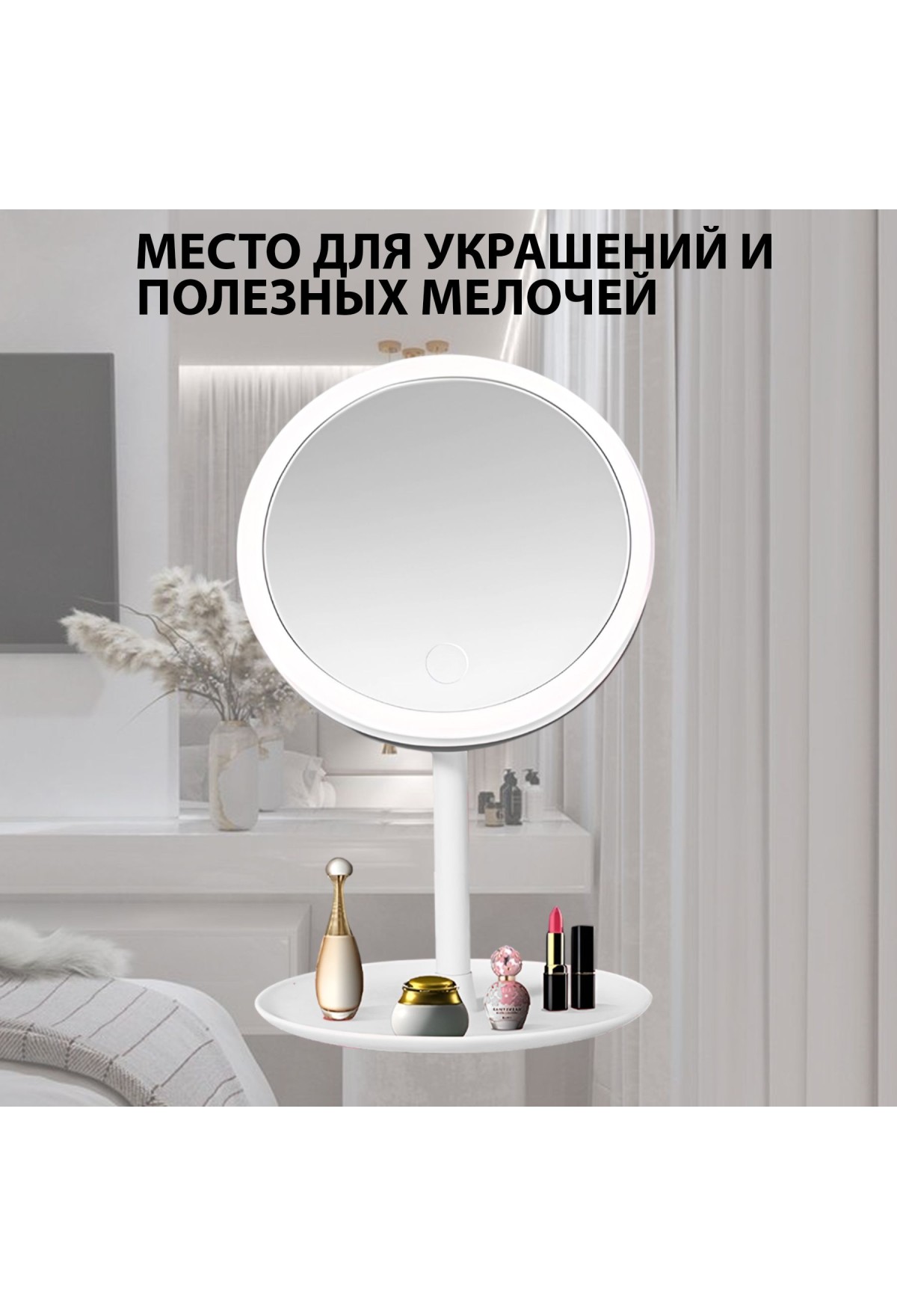 Зеркало для макияжа с устойчивой подставкой. Его можно разместить в ванной, а также на комоде или гримерном столе в спальне и тд.