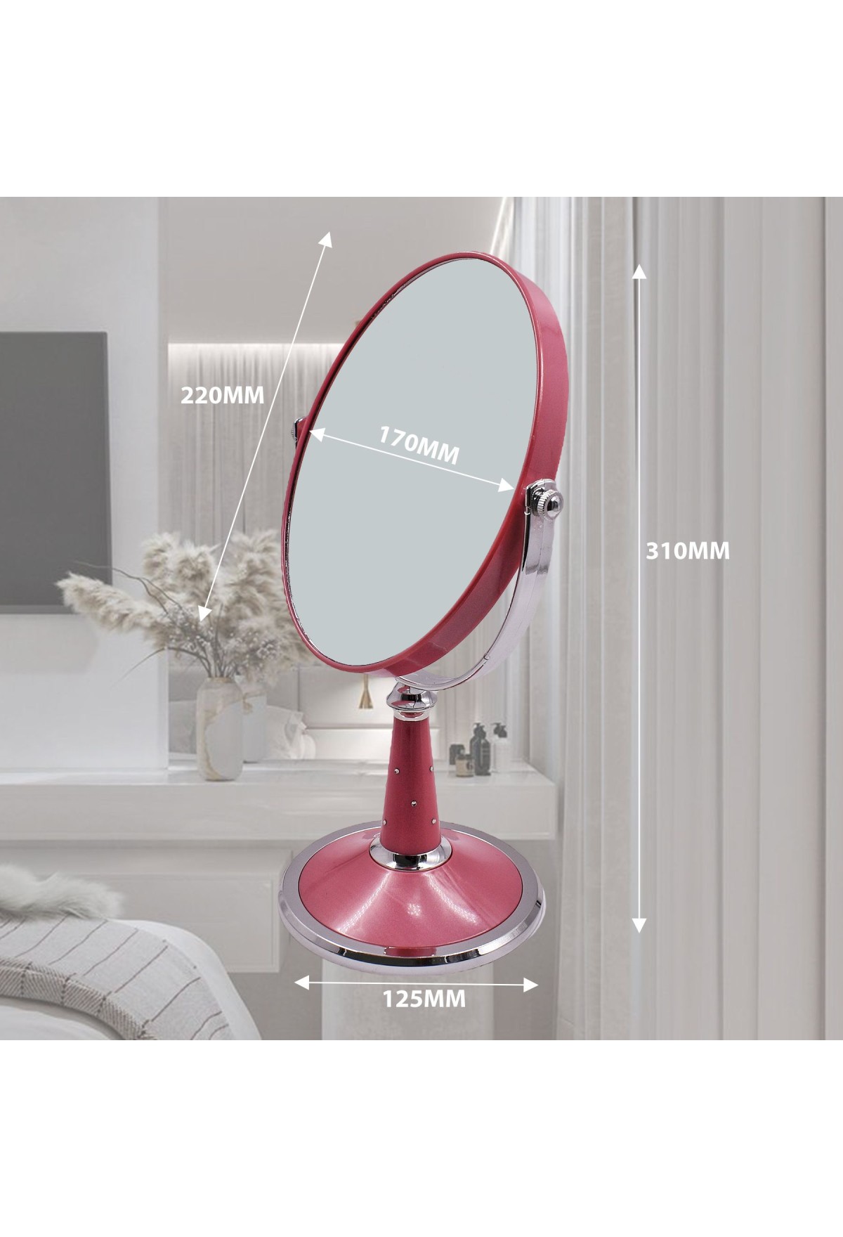 С одной стороны расположено стандартное зеркало, а со второй - зеркало двукратным увеличением для более точного нанесения косметики, косметических средств, коррекции бровей, для работы с контактными линзами, для бритья.