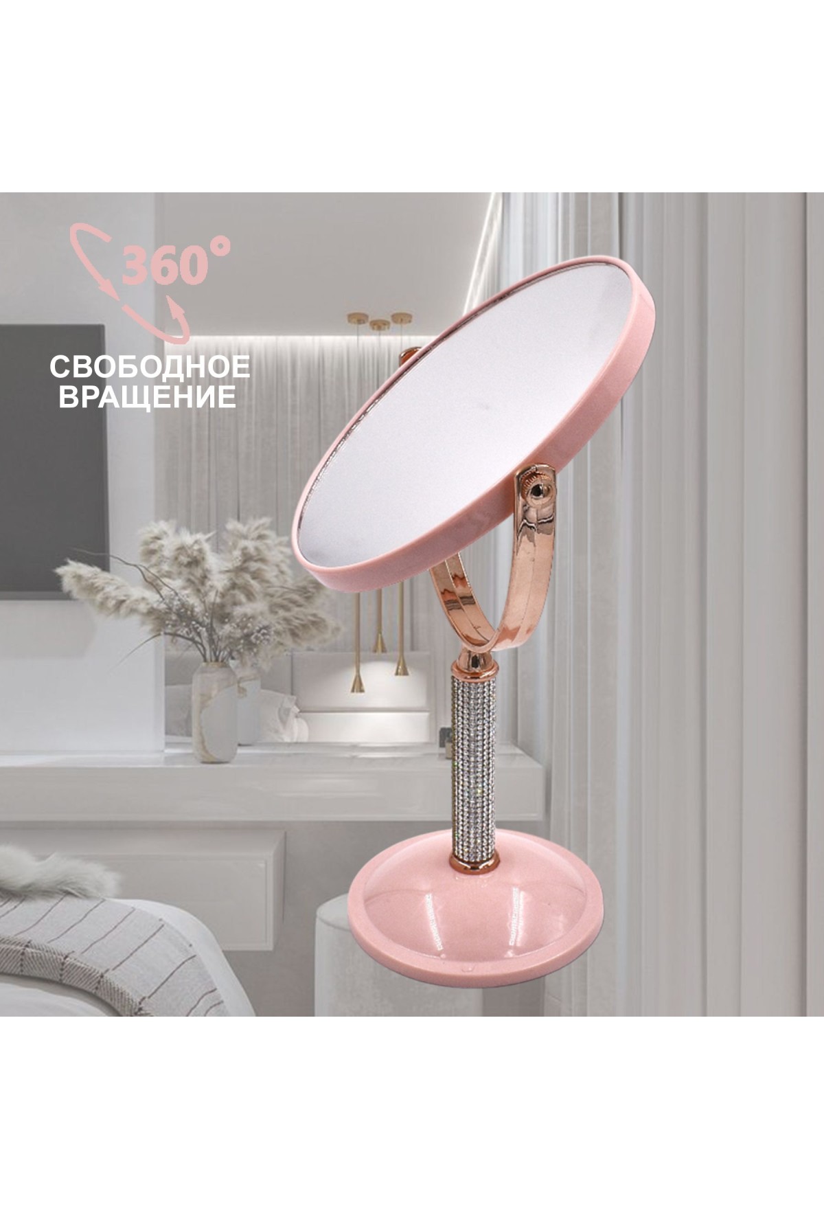 Овальное зеркало для макияжа с устойчивой подставкой. Его можно разместить в ванной, а также на комоде или гримерном столе в спальне и тд.