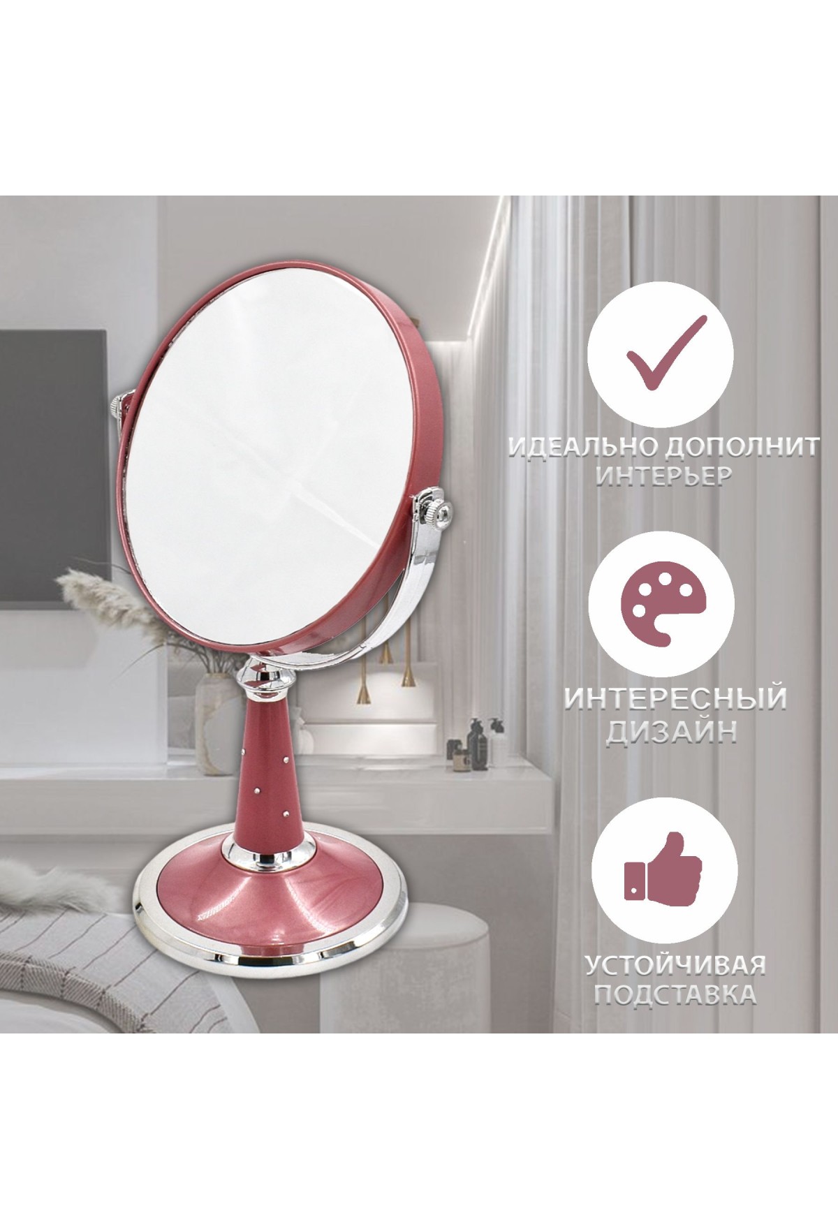 зеркало для макияжа с устойчивой подставкой. Его можно разместить в ванной, а также на комоде или гримерном столе в спальне и тд.