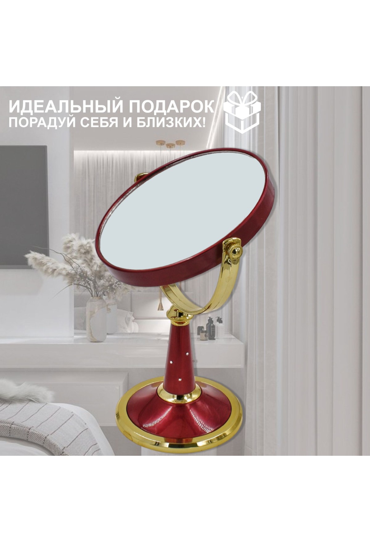 зеркало для макияжа с устойчивой подставкой. Его можно разместить в ванной, а также на комоде или гримерном столе в спальне и тд.