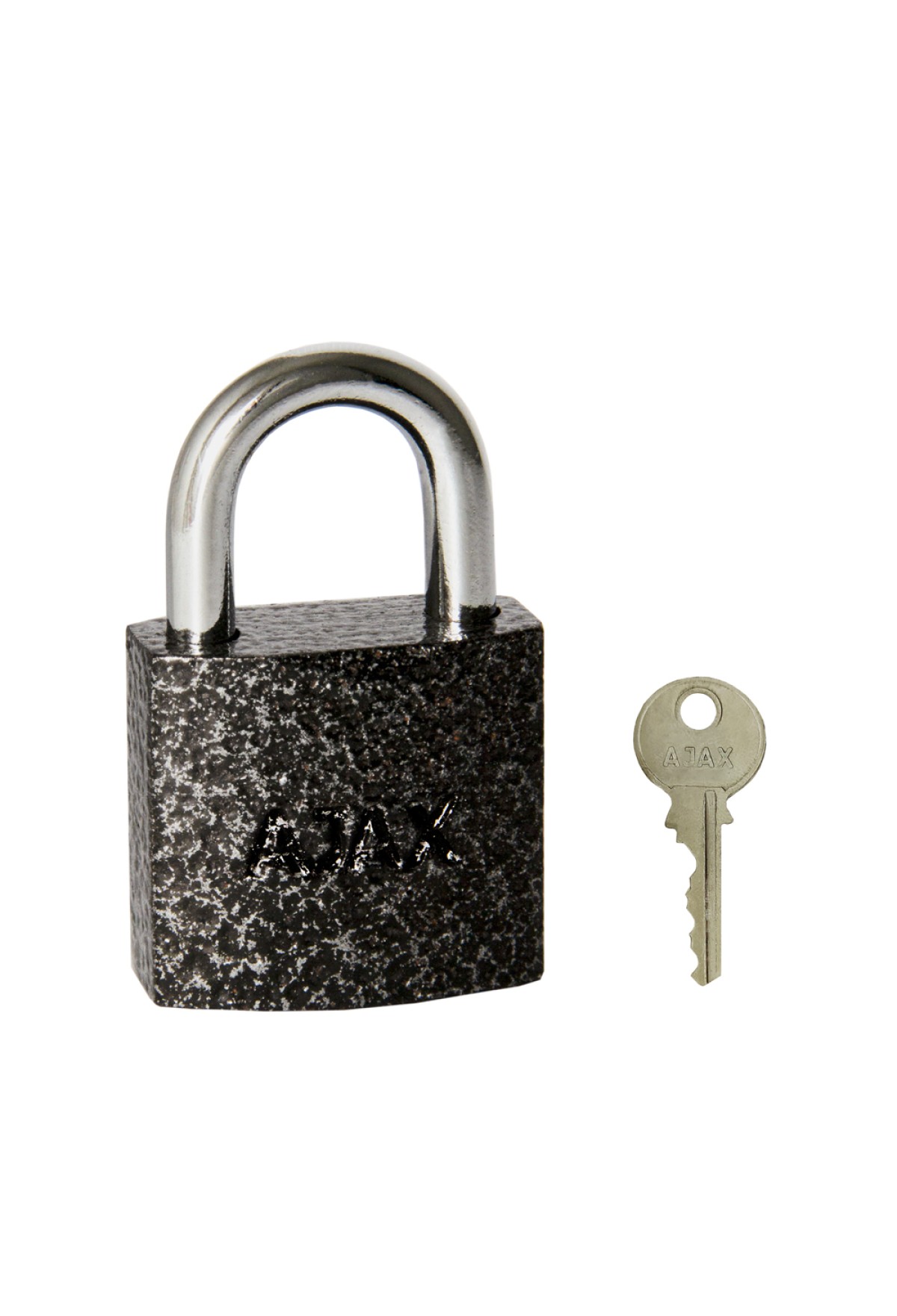 Навесной замок Ajax серии PD-01 предназначен для запирания внешних и внутренних дверей, оснащенных проушинами. Чугунный корпус с антикоррозийным покрытием, закаленная дужка, автоматическое запирание, 3 английских ключа в комплекте. Упакованы в пакет. Гарантия 12 месяцев.