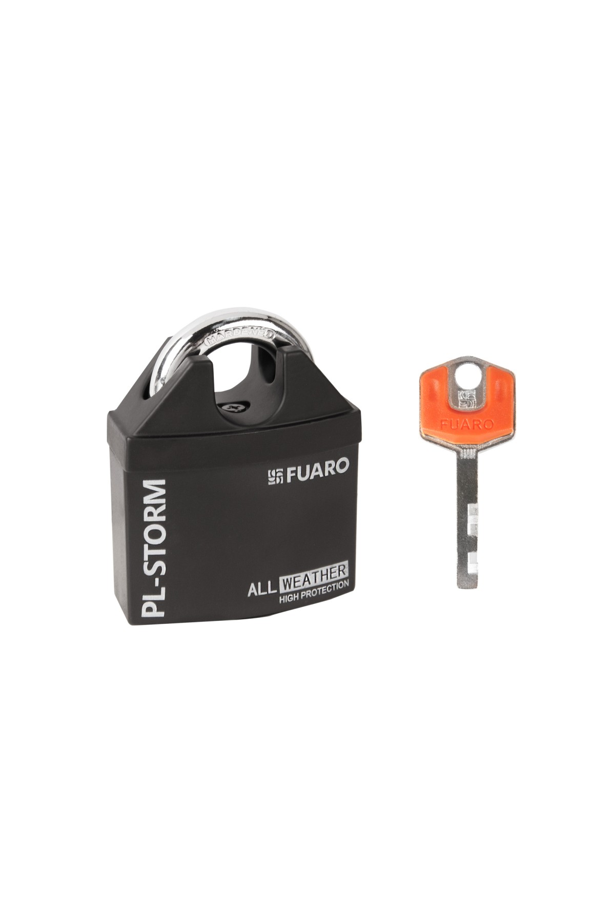 Всепогодный навесной замок Fuaro PL-STORM предназначен для дверей, ворот и других объектов, требующих надежной защиты. PL-STORM изготовлен из оцинкованной стали, для надежной и продолжительной работы оснащён латунным дисковым механизмом и латунным ротором, отлично зарекомендовавшими себя в суровых условиях эксплуатации (испытан 30 000 часов). Закаленная дужка с алюминиевыми протекторами для защиты от перепиливания. Пластиковый кожух. защита ключевины. Морозостойкость до -50°С. В комплектацию входят 4 дисковых ключа с пластиковой головкой.