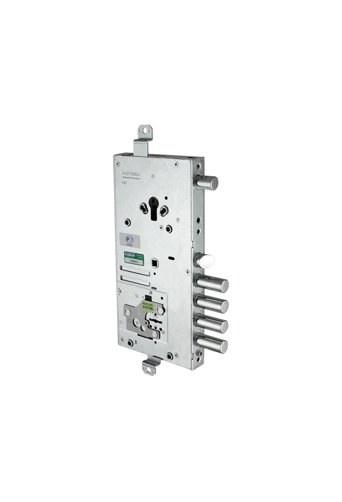 Замок врезной двухсистемный перекодируемый Mottura 54.J919M My Key D предназначен для металлических и бронированных дверей правого открывания. Это более усовершенствованная модель: нуклео больше не выступает над поверхностью и не требует под себя «окно» в двери. Инновационные замки My Key имеют подвижные сферы на стержне ключа и внутренние пины, существенно затрудняющие вскрытие отмычками (патент компании Mottura), а также предотвращающие незаконное изготовление дубликатов ключей. Копии таких ключей можно изготовить только в авторизованных центрах Mottura Club при предъявлении оригинального ключа и карточки владельца. Перекодировать замок очень просто. С каждым замком поставляется инструкция по перекодировке на русском языке. Перекодировка осуществляется с торца замка. Возможность изменять кодовую комбинацию замка неограниченное количество раз. Функция перекодировки замка позволит самостоятельно и в любой момент заменить ключи в замке. Возможно самостоятельно создавать мастер-системы. Нижний 4-оборотный замок на три точки запирания с нуклео, с реверсивной защелкой диаметром 19 мм, приводимой в действие ключом и ручкой. Верхний 2-оборотный боковой цилиндровый замок (с зубчатой передачей), круглый ригель диаметром 18 мм ходом 22мм, защелка и блокировка нижнего замка. В комплекте: 5 сувальдных ключей 60 мм в герметичной упаковке, 1 внутренняя накладка, 1 наружная накладка.