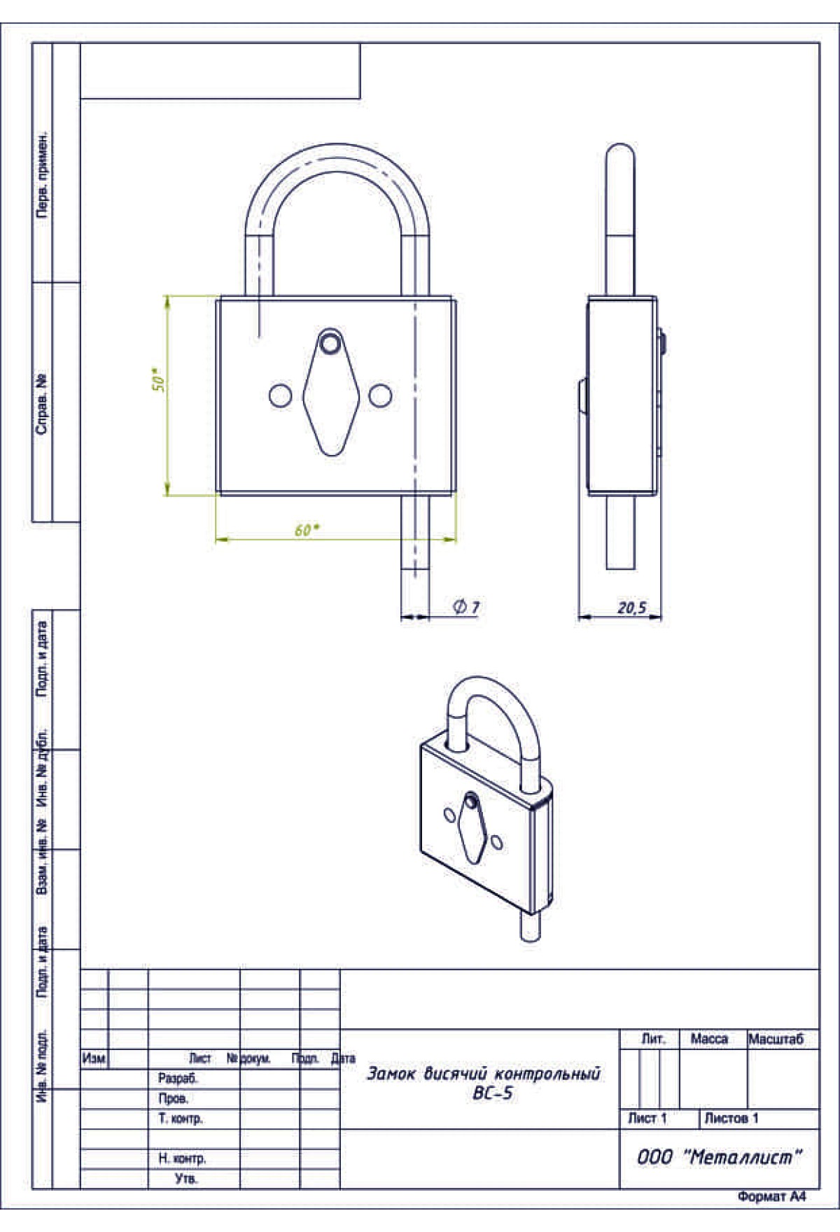 • Замок Висячий-Контрольный Вс-5 (10 Шт.) Цинк