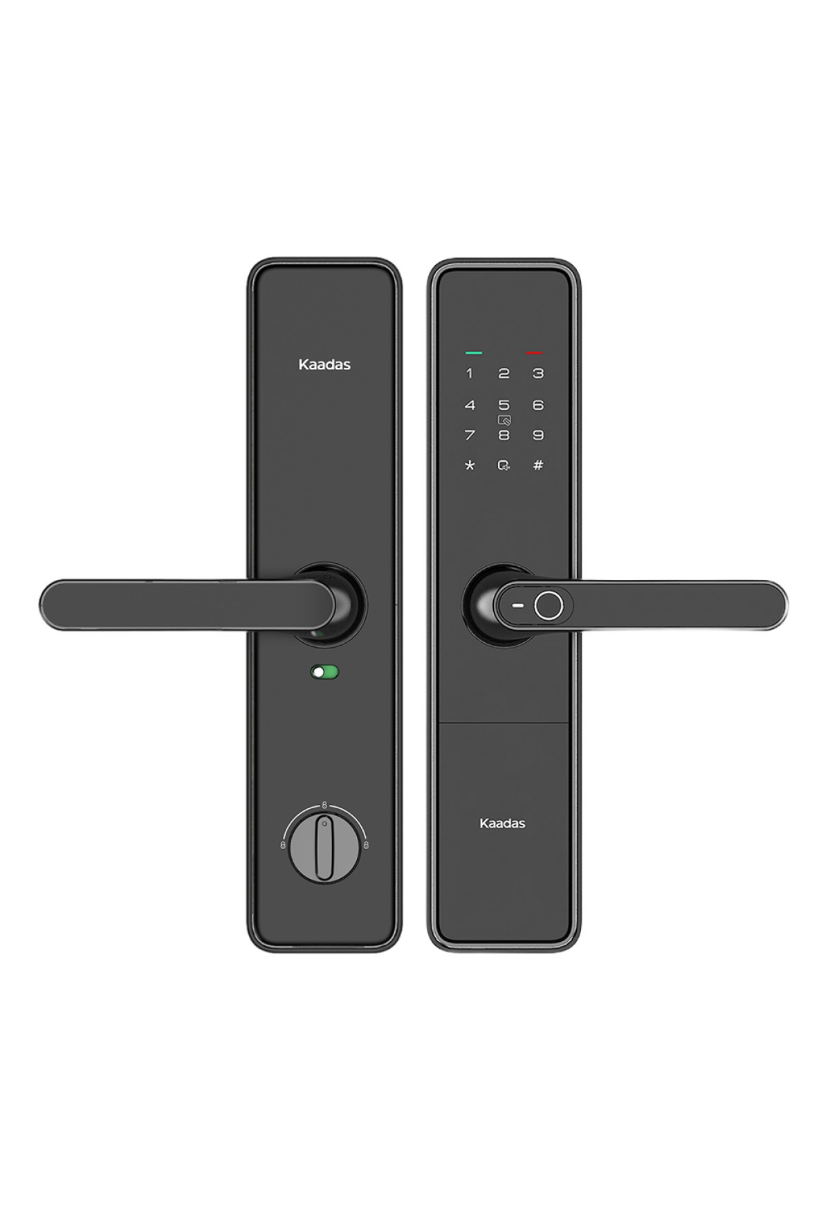 Kaadas S500-5W c Wifi - электронный замок с ручкой врезного типа с полуавтоматической системой запирания. Оснащен встроенным биометрическим сканером отпечатка пальца, расположенным прямо на ручке. Открывается 10 паролями, запоминает до 100 отпечатков пальцев и 100 RF-карт, есть аварийный механический ключ. Рекомендуемая толщина двери 38-120 мм. Русскоязычный голосовой помощник.