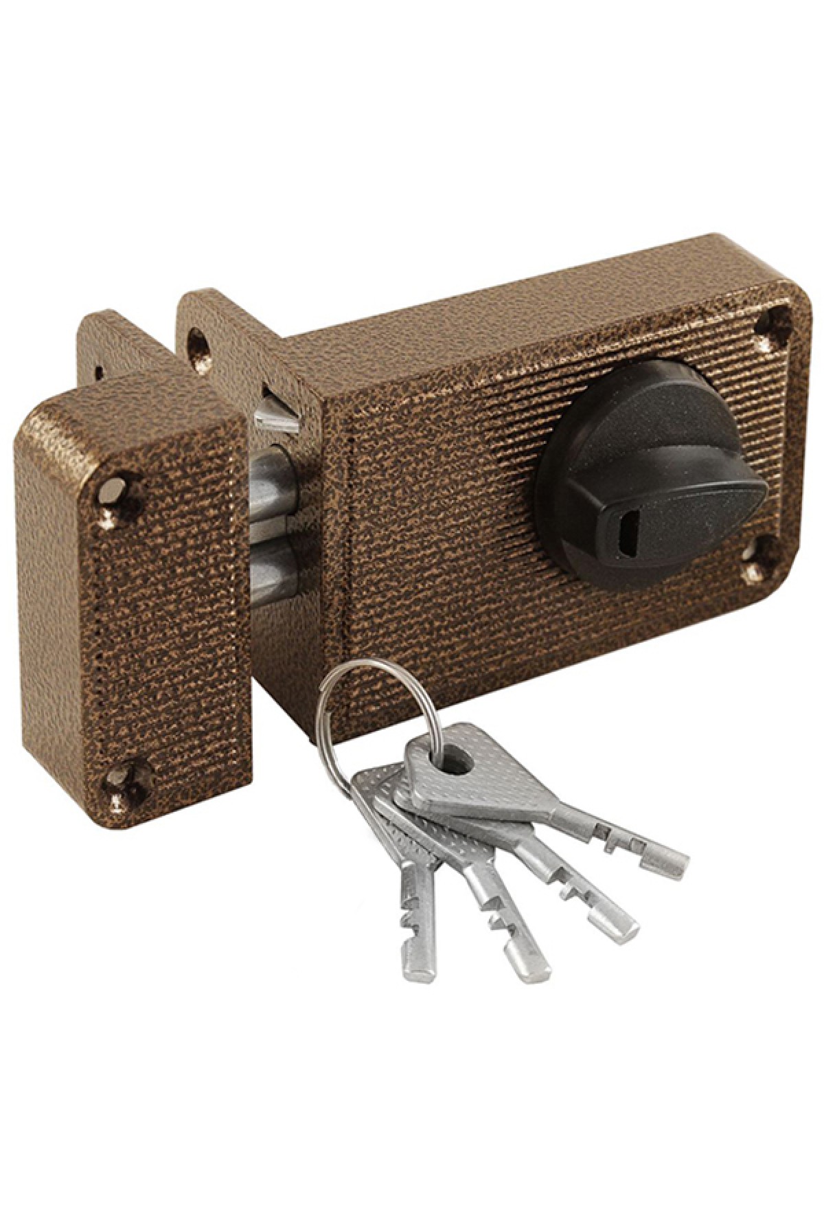 Замок накладной цилиндровый ЗН2-6 предназначен для деревянных и металлических дверей. Корпус замка и ригели выполнены из стали. Изнутри замок запирается ручкой. 2 класс секрета. Количество секретных комбинаций: 2 500. Два ригеля диаметром 11 мм. Цвет: медь. Комплектация: замок, цилиндровый механизм МЦ-1, 3 финских ключа, ответная планка, 1 накладка, крепежная фурнитура.