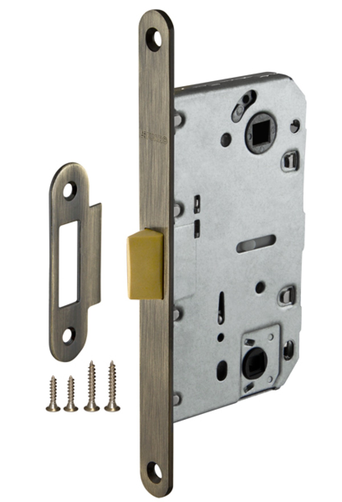 Дверная защелка с пластиковым механизмом Fuaro P96WC серии PLASTIC изготовлена в соответствии с требованиями ГОСТ 5089-2003. Предназначена для установки в деревянные межкомнатные и сантехнические двери. Легкая смена направления язычка защелки, подходит для дверей левого и правого открывания. Корпус выполнен из стали с надежным гальваническим покрытием. Ударопрочный пластиковый механизм обеспечивает бесшумность работы защелки. Защелка P96WC с усиленным блоком пружин имеет высший 4 класс надежности (250 000 циклов открывания/закрывания). Отверстия под стяжные винты находятся на расстоянии 38 мм. Размер бэксета - 50 мм. Размер межосевого расстояния - 96 мм. Возможна установка дверных ручек на стяжные винты для более прочного крепления. Цвет: бронза. В комплектацию входят: ответная планка и крепежная фурнитура в цвет изделия.